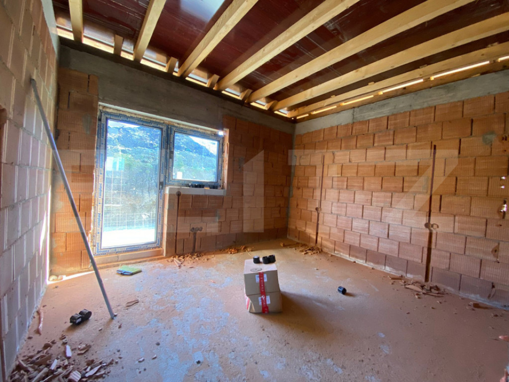 Blitz va prezinta spre vanzare o casa moderna pe parter, situata in Apahida, ideala pentru o familie care isi doreste confort, liniste si o curte generoasa. Proprietatea se preda la stadiul de semifinisat, cu posibilitatea de personalizare dupa preferintele viitorului proprietar. Detalii proprietate: -Suprafata utila: 103 mp -Teren: 500 mp -Curte amenajata cu pavaj, gazon si gard complet montat -In spate se va construi un foisor dotat cu gratar si cuptor pentru pizza -Loc de parcare amenajat in fata casei Constructie: -Casa din caramida, cu hidroizolatie la fundatie -Acoperis din tigla -Posibilitate de amenajare a podului intr-un spatiu util -Incalzire in pardoseala -Toate utilitatile: apa, gaz, curent, canalizare Compartimentare: -Bucatarie open-space cu living -3 dormitoare 1- baie (Exista posibilitatea de modificare a compartimentarii – se poate mari zona de living si bucatarie, pastrand doar 2 dormitoare, in functie de preferinta cumparatorului.) Alte avantaje: -Constructorul poate livra casa complet finisata, contra cost -Stadiul actual permite alegerea materialelor si finisajelor dorite -Zona linistita, cu acces facil catre Cluj-Napoca Blitz va asteapta la vizionare pentru a descoperi aceasta casa practica si moderna, perfecta pentru o familie care cauta un camin personalizabil, aproape de oras si de natura. Cod ofertă / ID BLITZ: P156698 Id intern: P156698