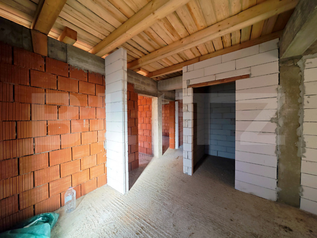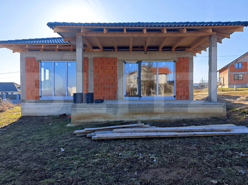Blitz vă pune la dispoziție o casă spectaculoasă situată în Paleu, în zona metropolitană a Oradea, ideală pentru cei care își doresc liniște, spațiu și o locuință modernă aproape de oraș. Proprietatea este amplasată pe un teren generos de 650 mp, cu dublu front stradal, și dispune de 103 mp utili, la care se adaugă o terasă acoperită de 20 mp, perfectă pentru relaxare. Casa este construită pe un singur nivel, fiind foarte luminoasă datorită orientării sudice. Imobilul se află la stadiul roșu, având deja montată tâmplărie premium cu geamuri tripan (3 straturi, 7 foi de sticlă). Există posibilitatea finisării la cheie, în funcție de preferințele cumpărătorului. Pe stradă sunt disponibile curentul și gazul, iar apa și canalizarea urmează să fie introduse, zona fiind într-o dezvoltare rapidă. O oportunitate excelentă pentru cei care caută o casă modernă, spațioasă și ușor de personalizat, la doar câteva minute de Oradea. Cod ofertă / ID BLITZ: P166186 Id intern: P166186