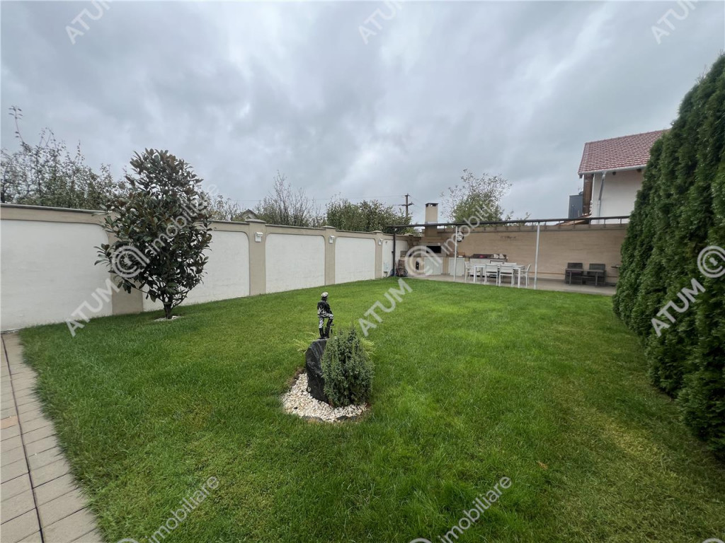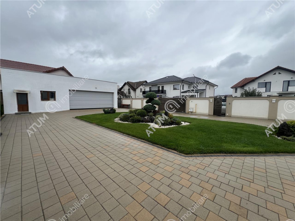 Va propunem spre achizitie o casa trainica, construita responsabil "ca pentru noi" situata in Selimbar, compusa din 4 camere decomandate si 3 bai, in suprafata totala de 324 mp si garaj pentru 2 masini 41,69 mp, amplasata intr-o zona linistita, pe o strada pozitionata in plan secundar fata de artera principala de circulatie ferita de zgomotul si praful datorat traficului rutier. Casa a fost construita pe un teren generos de 1000 mp cu deschiderea de 39,45 m la strada, amprenta la sol este de 300 mp incluzand si anexele, suprafata casei desfasurata totala de 324 mp, impartita pe Demisol Parter. Curtea libera de 700 mp este amenajata cu gazon, plante si arbori maturi, accesul auto si pietonal este amenajat cu dale, poarta de acces auto cu telecomanda si interfon video. Suprafata utila a casei este de 212,30 mp si este compusa la parter din camera de zi 51,18 mp, 3 dormitoare spatioase unde dormitorul matrimonial masoara 20.44 mp care dispune si de propria baie de 8.12 mp amenajata atat cu cada cat si cu dus tip rain shower si geam pentru aerisirea naturala si alte doua dormitoare de 18,50 mp respectiv 18.00 mp, bucataria separata de 22,85 mp cu acces la o camara de 3.12 mp, dressing de 8,74 mp, o baie de 6.51 mp amenajata cu dus tip rain shower si cada cu hidromasaj si dotata cu geam pentru aerisire care deserveste pentru cele 2 dormitoare si o toaleta de serviciu de 2.58 mp, doua holuri dintre care unul masoara 10,77 mp iar al doilea 5.00 mp si casa scarii de 3,80 mp prin intermediul careia se face accesul la Demisol. Demisolul este alcatuit din 2 incaperi, o camera de 17.38 mp si camera tehnica de 14.04 mp. Separat de suprafata utila a casei, imobilul mai dispune si de o terasa la parter de 70,20 mp prin intermdiul careia se face accesul in casa iar din interior se poate face accesul din toate incaperile pe terasa. Anexe ale casei se mai adauga si un garaj de 41.69 mp cu poarta automata unde pot fi parcate 2 autoturisme, o magazie de 27.50 mp destinata depozitarii si o filigorie de aproximativ de 15.00 mp dotata gratar zidit si utilitati. Terenul liber ramas este amenajat profesional si impartit in doua zone, zona principala amenajata cu dale unde pe langa garaj mai pot fi parcare aproximativ 5 autoturisme si amenajata cu gazon si zone decorative cu flori si arbusti iar zona de relaxare unde se afla si filigoria este amenajata cu gazon si delimitata de un " perete " din Tuia de aproximativ 2,5 m inaltime astfel avand o zona intima, ideala pentru momentele petrecute cu familia si prietenii. Constructia a fost finalizata icirc;n anul 2017 cu materiale de calitate superioara si atentie la detalii. Confortul termic este asigurat de centrala termica proprie pe gaz si incalzirea in pardoseala cu sistem de termostatare individuala pentru fiecare incapere, a semineului pe lemne pozitionat in camera de zi si a sistemului de aer conditionat cu aparataje montate in diverse puncte din casa. Casa mai dispune si de sistem de recirculare a aerului. Amenajarea casei a fost gandita pana la cel mai mic detaliu, fiind accesorizata cu finisaje si dotari premium: usi de acces din PVC, usi interioare marca Porta Doors, tamplarie PVC 7 camere si 3 foi de sticla profil de 82 mm grosime, pardoseala placata cu gresie si parchet laminat de 14 mm in dormitoare, faianta, obiecte sanitare de calitate superioara. Imobilul dispune si de sisteme smart precum: controlul aerului conditionat, controlul usilor de acces in imobil cat si de la poarta auto si pietonala automatizate. Casa se poate prelua mobilata si utilata complet cu electrocasnice incorporate ( plita electrica, cuptor electric, hota, frigider, masina de spalat vase si masina de spalat rufe cu uscator ) si functionala din toate punctele de vedere. Ca elemente tehnice, amintesc faptul ca proprietatea dispune de toate utilitatile (curent electric, gaze naturale, apa curenta, canalizare, cablu internet si TV), sistem de supravegere video, s