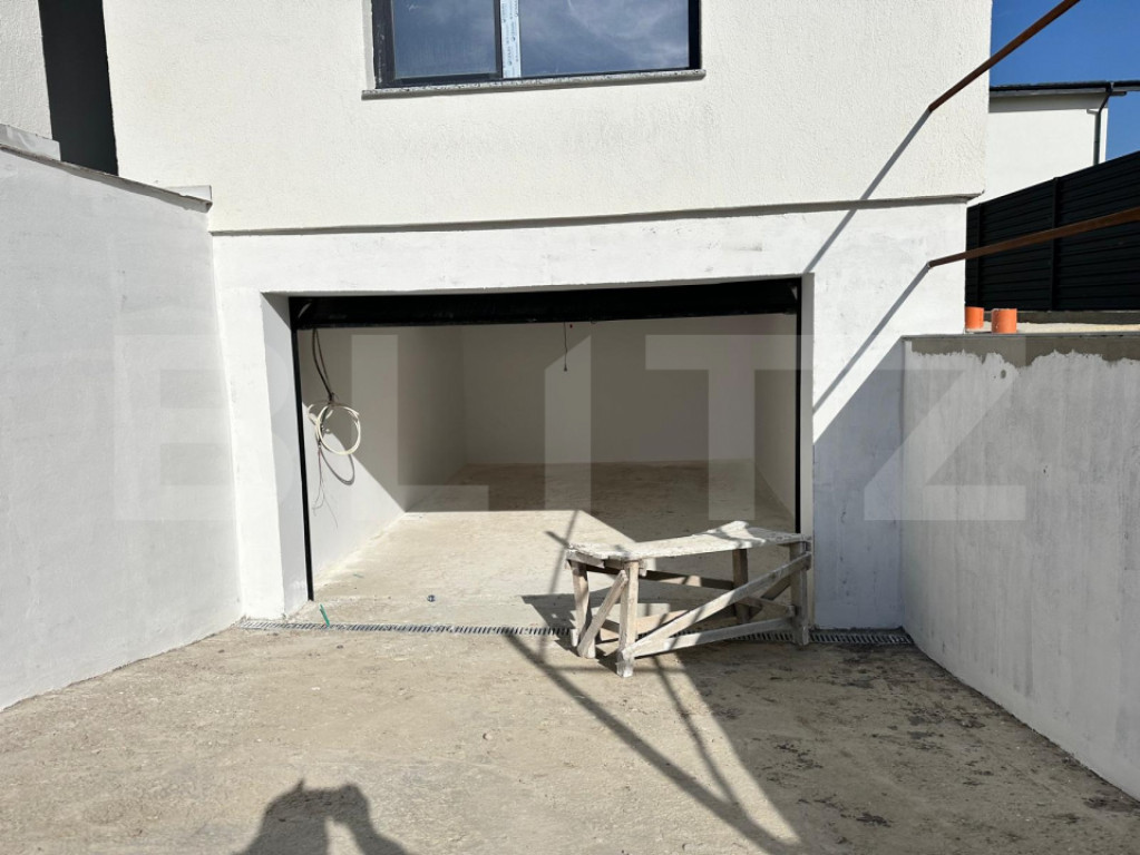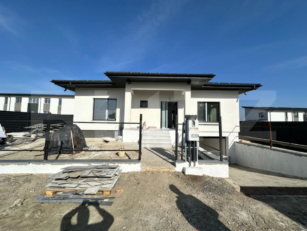 Casă modernă, plan parter, 117 mp utili + garaj, teren 451