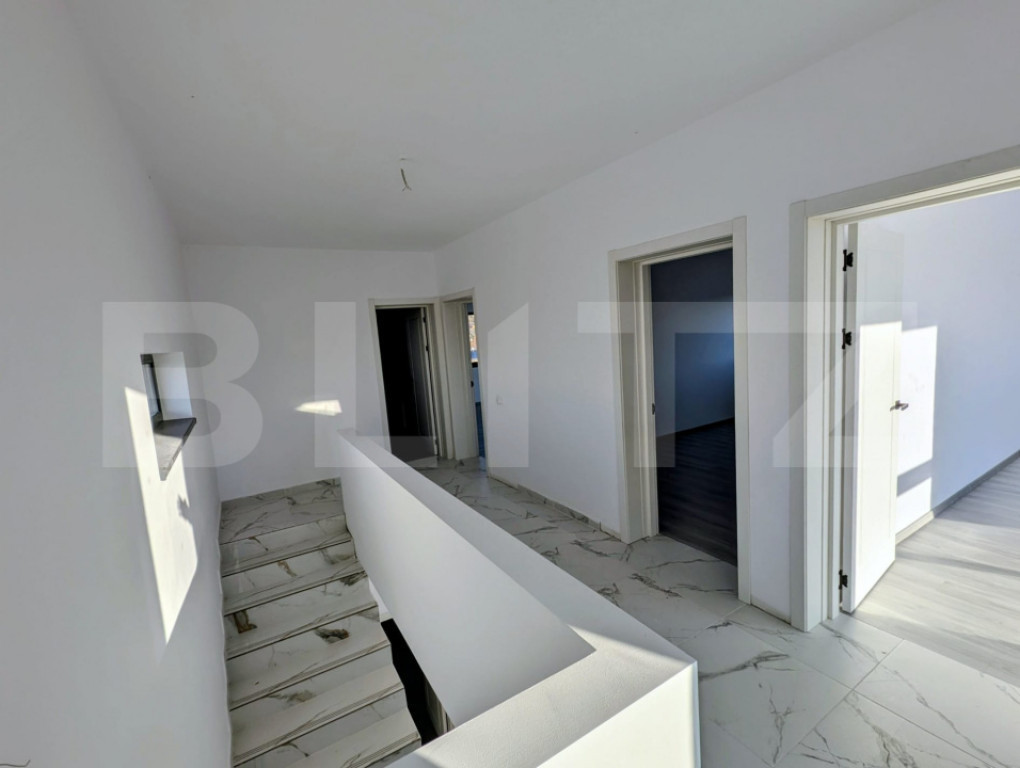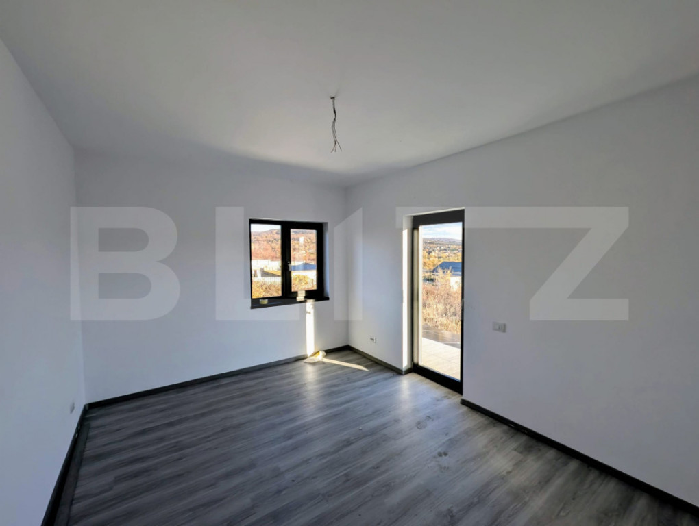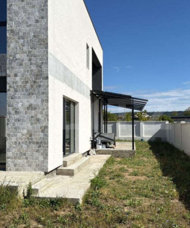 Proprietatea este amplasată pe un teren generos, împrejmuit cu gard și poartă metalică, oferind intimitate și siguranță. Casa se remarcă printr-un design contemporan, cu linii drepte, fațadă în nuanțe elegante de gri și accente placate cu piatră decorativă. Locuința dispune de: parter și etaj, compartimentare practică și eficientă; spații vitrate mari, care asigură o bună lumină naturală; curte proprie, ideală pentru amenajare grădină, terasă sau loc de joacă; Se află într-o zonă cu priveliște frumoasă, aproape de natură, dar și de facilități urbane — magazine, stație de transport în comun, școală și alte servicii. Cod ofertă / ID BLITZ: P156424 Id intern: P156424