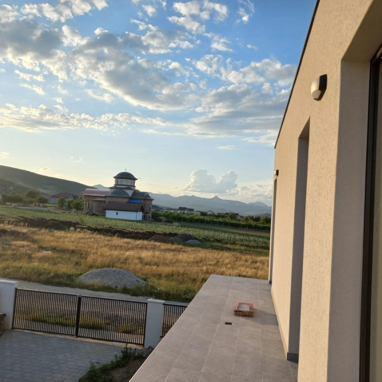 Descriere Casa moderna tip vilă în Alba Iulia – zona SCHIT MAMUi- O casă gândită pentru confortul unei familii moderne LOCALIZARE PREMIUM Zona Alba Micesti este una dintre cele mai căutate pentru construcții rezidențiale de calitate. La 200m de asfalt, Penny, in proximitate statie transport in comun, Kaufland, biserica, spital și zona agrement Parc Dendrologic Valea Popii. AVANTAJE UNICE -Design arhitectural contemporan – fațadă minimalistă cu linii curate, combinație elegantă alb–antracit, geamuri mari pe două niveluri, terasă generoasă de 25 mp și gard perimetral din beton cu porți metalice moderne -Grădină proprie și curte amenajată – spațiu verde ideal pentru relaxare, grădinărit sau joacă pentru copii -Luminozitate naturală maximă – ferestre vitrate în living și dormitoare, orientare optimă pentru lumină pe tot parcursul zilei -Configurație interioară funcțională – spații clar delimitate, circulație fluentă între zonele de zi și de noapte -Bucătărie open space – cu insulă centrală, multiple spații de depozitare și posibilitate de amenajare modernă -Finisaje durabile și calde – tencuieli interioare aplicate, pereți despărțitori din cărămidă, structură solidă din beton armat DOTĂRI ȘI EFICIENȚĂ Centrală termică proprie – gaz racordat; centrala termica montata Încălzire în pardoseală (opțional, în funcție de stadiul de predare) Toate utilitățile (gaz, apă, curent) racorduri realizate Hidrozolație superioară acoperis și consum redus de energie Posibilitate de montare panouri fotovoltaice Sistem de supraveghere video (la cerere; exista instalatie montata) Gard complet din beton + porți metalice auto și pietonale CONFIGURAȚIE Casă tip vilă (P+1) Suprafață teren: 386 mp Suprafață construită: 105 mp Suprafață desfășurată totală: 215 mp Suprafață utilă: 120 mp Terasă acoperită: 25 mp Compartimentare ideală: Parter: Living spațios cu zonă de dining Bucătărie open-space Baie + spațiu tehnic / depozitare Acces direct în grădină și pe terasă Etaj: 3 dormitoare luminoase; balcon generos 3 camere Baie mare Dressing si spațiu pentru depozitare Stadiu semifinisat, cu toate instalațiile functionale CONTACT 0729933524