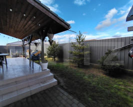 Exterior: curte pavată, gradină parțial amenajată, împrejmuire cu gard înalt de tablă ce conferă intimitate deplină, poartă cu telecomandă, magazie. În proximitatea zonei se va dezvolta un proiect turistic cu destinație balneară.