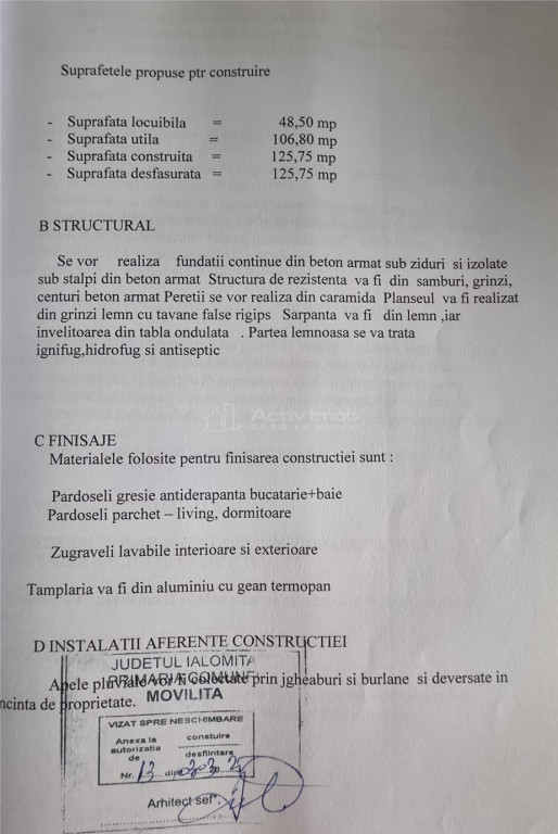 Casa de Vanzare ndash; Localitatea Movilita Pret: (125000 euro) Localizare: Localitatea Movilita- Primarie Tip imobil: Casa individuala Camere: 3 camere Suprafata utila: 107 mp Suprafata construita: 125 mp Teren total: 1000 mp Deschidere teren: 20 ml Descriere generala Va propunem spre achizitie o casa improspatata si bine intretinuta, construita din materiale de inalta calitate, situata intr-o zona linistita si placuta din Movilita mdash; ideala pentru familii sau pentru cei care isi doresc un trai confortabil aproape de natura. Compartimentare amp; Suprafata 3 camere spatioase, luminoase si bine compartimentate Suprafata totala utila: 107 mp Suprafata construita: 125 mp Holuri largi si zone de circulatie comode Structura amp; Finisaje Constructie solida din caramida si cadre din beton Finisaje moderne si durabile Tamplarie de calitate si izolatie termica excelenta Dotari Tehnice Centrala termica pe peleti mdash; eficienta si economica Icirc;ncalzire in pardoseala mdash; pentru confort termic optim in toate incaperile Instalatii bine gandite si finisaje care asigura confort si durabilitate Teren amp; Exterior Teren generos de 1000 mp, cu deschidere de 20 ml Curte amenajata mdash; spatiu ideal pentru gradina, zona de relaxare sau extindere Posibilitati multiple de utilizare a terenului conform preferintelor viitorului proprietar Avantaje cheie Zona linistita, aproape de facilitati locale Materiale si tehnologie moderna de constructie Icirc;ncalzire eficienta si confortabila Teren mare cu deschidere generoasa Locuinta gata de mutat