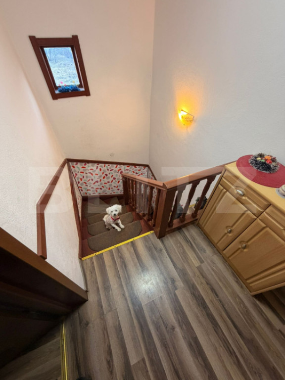Casă multifuncțională în Sadova – Inima Bucovinei Există locuri care nu sunt doar proprietăți, ci experiențe de viață. Această casă din Sadova, situată foarte aproape de celebra Panorama Bucovinei, îți oferă exact acel sentiment rar de liniște, libertate și conexiune cu natura. Imaginează-ți diminețile în care deschizi geamul și vezi dealurile Bucovinei scăldate în lumină, iar seara te relaxezi pe terasa generoasă de 36 mp, admirând un apus care pare pictat. Proprietatea este amplasată pe o stradă asfaltată, într-o zonă cu priveliște superbă, perfectă atât pentru locuit, cât și pentru o investiție turistică. Casa este construită din lemn, cu o suprafață utilă de 100 mp, amplasată pe un teren generos de 20 ari, oferind spațiu, intimitate și multiple posibilități de utilizare. Compartimentare inteligentă: Parter • living primitor • dormitor • baie • beci • spațiu care a funcționat anterior ca bar de zi, cu intrare separată – ideal pentru activitate comercială, cabinet, atelier sau spațiu de relaxare Etaj • 2 dormitoare luminoase • baie • living open-space cu bucătărie • hol tip dressing În plus, proprietatea dispune de o terasă închisă lipită de casă, utilizată în prezent ca foișor / sală de sport, un spațiu versatil pentru relaxare sau activități recreative. Dotări și utilități: • centrală pe lemne • sobe tradiționale • două fântâni proprii • fosă septică • acoperiș Lindab • uși și geamuri PVC • izolație exterioară de 8 cm Această proprietate este ideală pentru: • locuință permanentă într-un cadru natural spectaculos • pensiune, casă de vacanță sau business turistic • activități comerciale sau recreative Un loc unde liniștea Bucovinei, spațiul generos și versatilitatea proprietății creează oportunitatea perfectă pentru un nou început. Te invităm să descoperi personal farmecul acestui loc. Cod ofertă / ID BLITZ: P166356 Id intern: P166356
