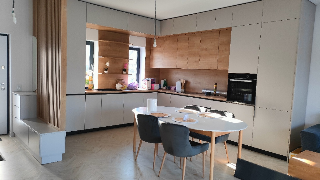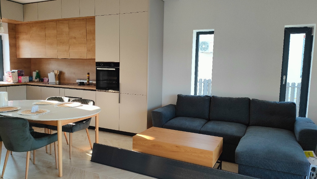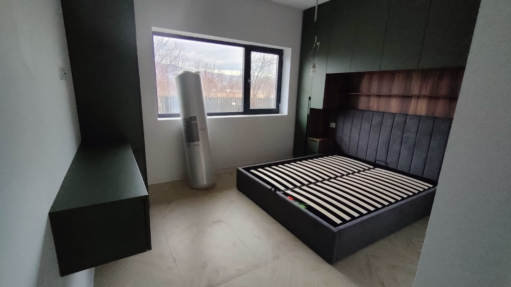 Direct proprietar! Negociabil Suprafață teren 400mp Suprafață casa 85mp Suprafață construită 105mp Casa noua, nelocuită, toate sunt noi. Casa am luat-o pentru noi dar din motive personale trebuie sa o vindem. Vă propun spre vânzare o casă nouă în complexul Nord Residence într-un cartier liniștit aflat la 5 minute cu mașina de oraș. Această proprietate este alegerea ideala pentru o familie ce caută confort, eleganța și liniște. În acest cartier de afla loc de joaca pentru copii, piscina și teren de tenis. Compartimentare: - living generos, modern cu ieșire în terasă și o priveliște superbă către curte; - Bucatarie open space cu zonă de luat masa; -2 băi ; -2 dormitoare ; -Terasa generoasa cu scări catre curte -Loc de parcare exterior foarte lat, cu posibilitate de a amenaja încă unul, dar am preferat sa fie pământ. -Mobila făcută pe comanda de calitate foarte buna, gândită până la cel mai mic detaliu, cu multa atenție. Dotări suplimentare aduse casei: -Mobila pe comanda -Electrocasnice noi:plita inducție, combina frigorifica incorporata, mașina spălat vase, hota(toate noi, nefolosite, cu garanție) -Incalzire in pardoseala -Izolatie suplimentara de 10cm cu vata minerala a tavanului. -Put de apa in curte+pompa de apa -Gresie in față, în lateralul casei și scări în spatele casei. -Robinet in exteriorul casei Total costuri 25.000 euro(incluse în prețul afișat). Casa se vinde complet mobilata și utilata așa cum se prezintă în poze,racordata la toate utilitățile: curent trifazic, gaz, apa, canalizare. Este disponibilă imediat pentru mutare. Mai multe poze și detalii la telefon. Va mulțumesc!