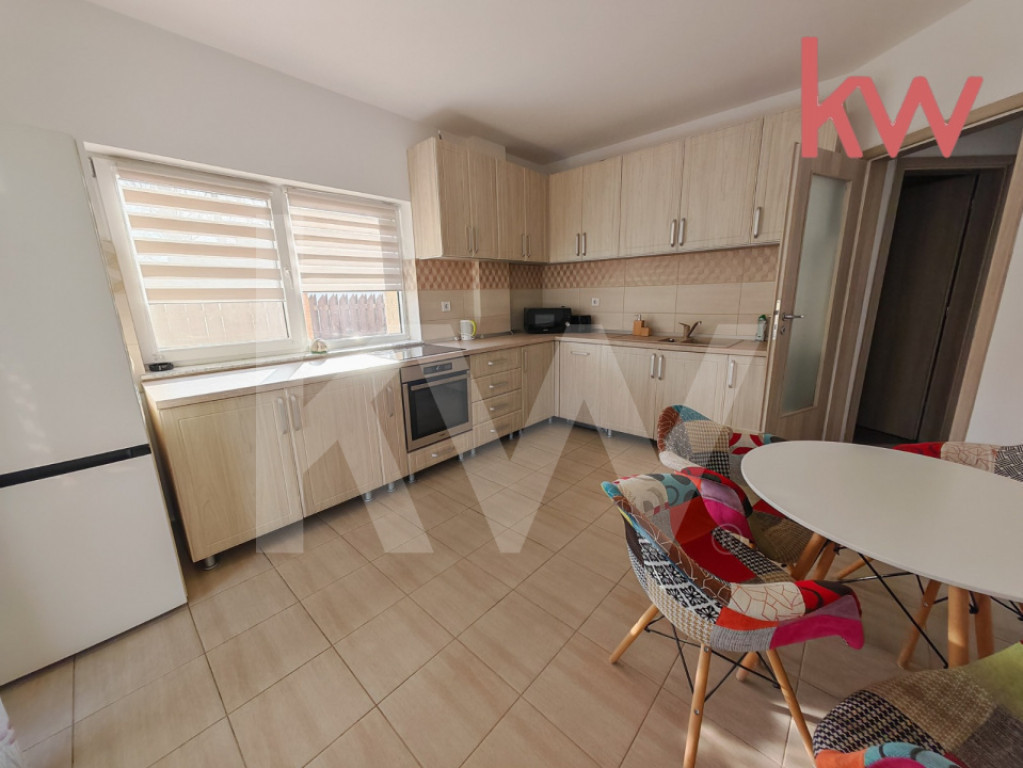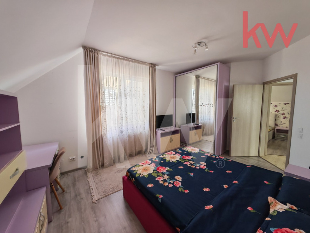 Proprietate modernă, cu suprafață utilă de 180 mp, construită pe un teren de 475 mp. Casa este complet mobilată și utilată, pregătită pentru mutare imediată. Compartimentare: Parter: -living spațios -bucătărie complet utilată -depozit -spălătorie -baie -hol generos Etaj: -3 dormitoare duble -birou / bibliotecă -2 băi complete (cadă + duș) -hol spațios Dotări și utilități: Canalizare, apă curentă, energie electrică, incălzire cu centrală electrică, panouri solare pentru apă caldă. Poartă electrică cu telecomandă, sistem de alarmă, internet fix și TV prin fibră optică. Plită cu inducție + cuptor electric, cuptor cu microunde, mașină de spălat vase, mașină de spălat rufe + uscător. Televizoare Smart LED WiFi în fiecare cameră. Exterior: terasă, grădină amenajată și 2 locuri de parcare. La cerere se pot monta, contra cost, panouri fotovoltaice și pampa de căldură. Sunați, disponibila imediat! Id intern: P11803