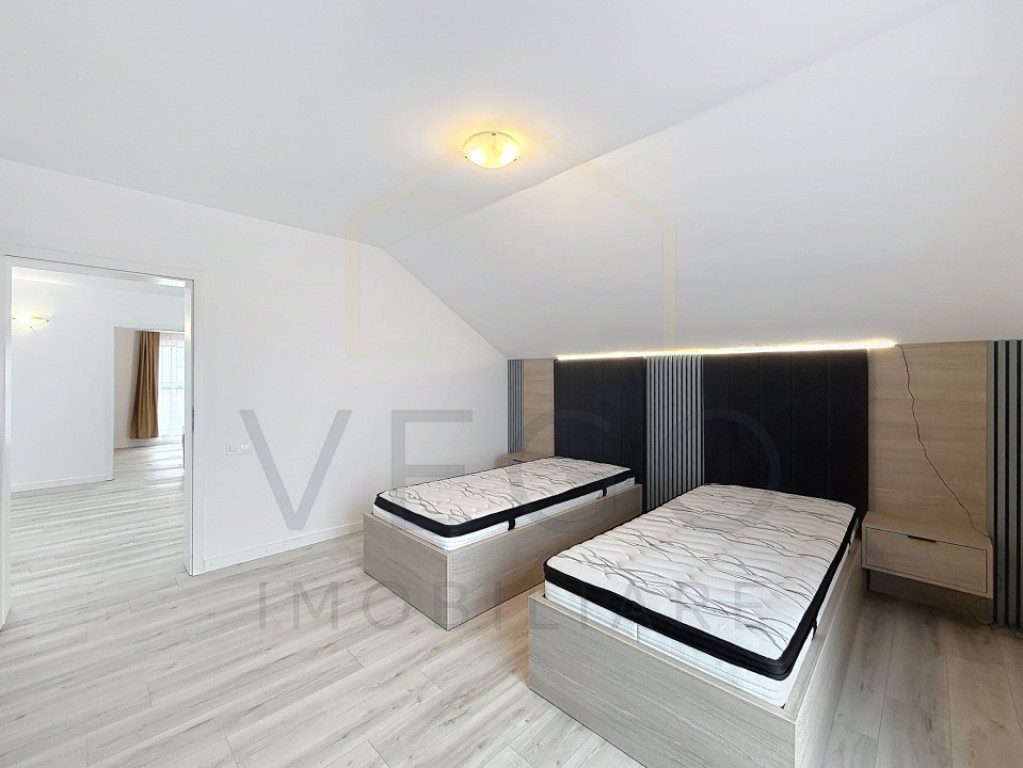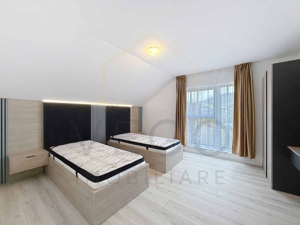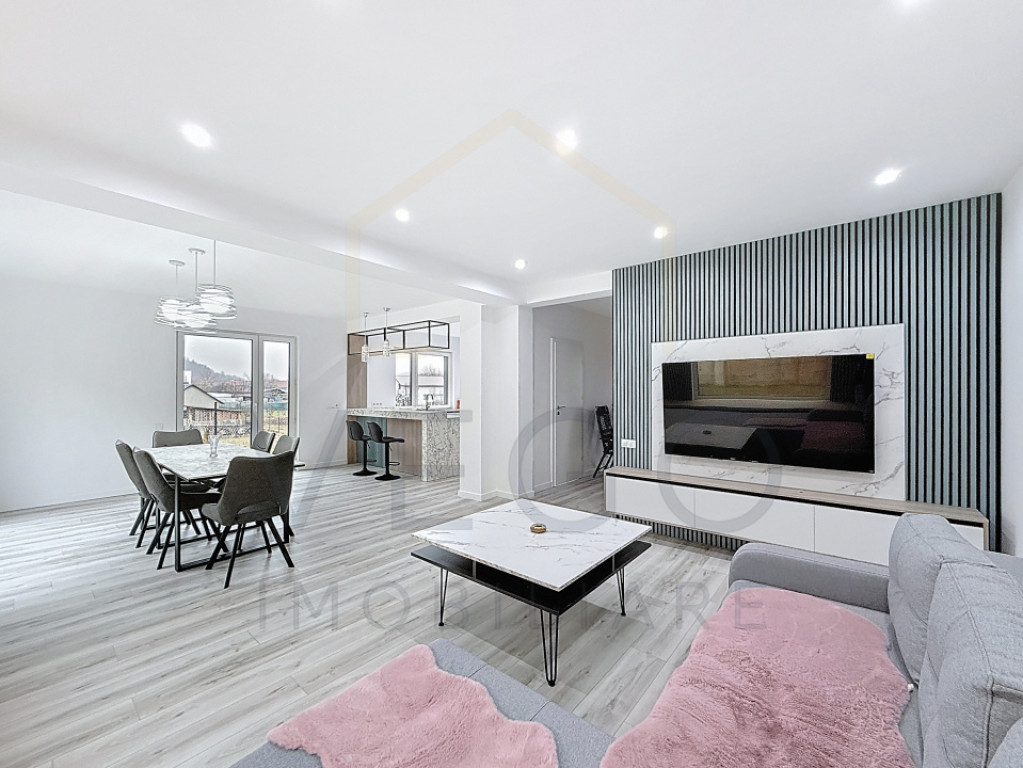 VEGO IMOBILIARE vă propune spre închiriere o proprietate modernă, finalizată în anul 2026, situată într-un cadru liniștit din localitatea Gilău, ideal pentru cei care apreciază intimitatea, spațiul generos și confortul modern, într-o zonă retrasă de la agitația urbană, dar cu acces facil către principalele puncte de interes. Imobilul este dispus pe regim de înălțime P+E și beneficiază de curte privată generoasă, oferind un cadru ideal pentru confort și relaxare. Cu o suprafață utilă de 180 mp, locuința se evidențiază prin finisaje de calitate superioară, mobilier modern și electrocasnice complete, fiind pregătită pentru mutare imediată. Dotările includ, printre altele: mașină de spălat vase, plită mixtă (electric + gaz) și Smart TV în living. Confortul termic este asigurat de centrala termică proprie, cu încălzire în pardoseală, oferind eficiență și confort pe tot parcursul anului. Un avantaj important îl reprezintă posibilitatea parcării mai multor autoturisme în curtea imobilului. Compartimentare: Parter: - living cu bucătărie open-space - cameră tehnică - debara - acces către etaj prin scară interioară Etaj: - dormitoare decomandate ( unul dintre ele cu walk-in dressing ) - 1 baie cu cadă și walk-in shower - zonă de living / relaxare Exterior: - curte de aproximativ 1000 mp - zonă dedicată pentru barbeque Imobilul este disponibil pentru vizionare cu programare prealabilă. Se acceptă și închiriere pe termen scurt, în funcție de condițiile agreate. Pentru informații suplimentare sau programarea unei vizionări, vă stăm la dispoziție. Preț: 1500 euro/lună ID: R955 Id intern: P257994