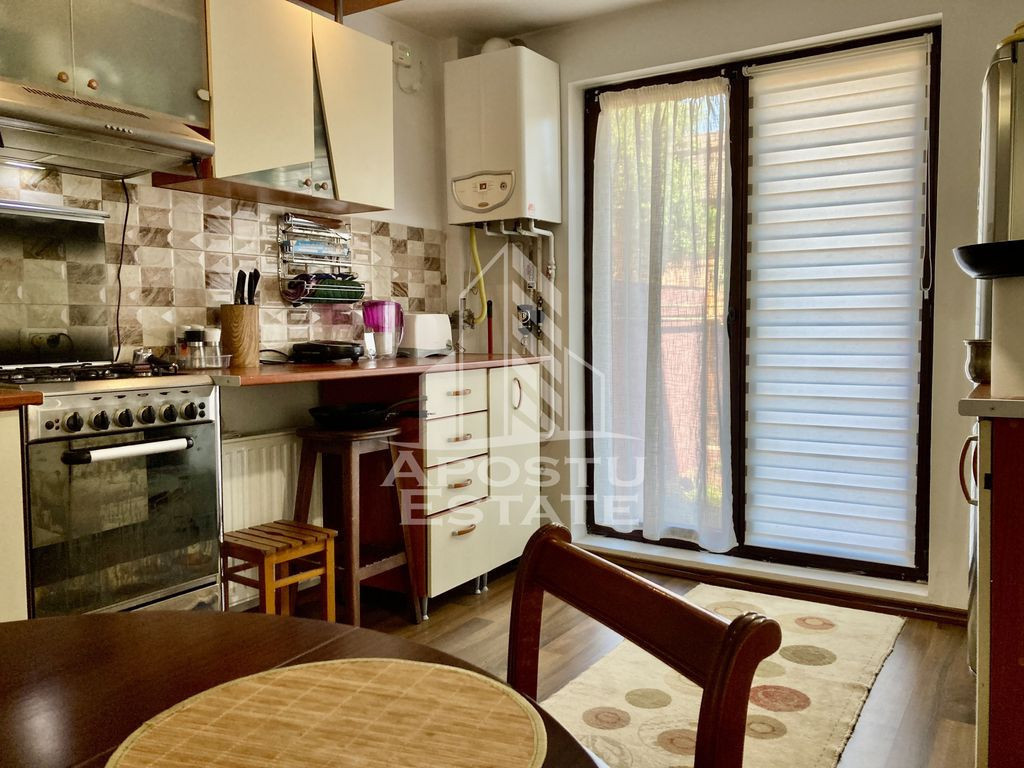 APOSTU ESTATE va propune spre vanzare o casa tip duplex, situata in zona Dorobantilor. Constructia este solida, realizata in anul 2012, din caramida Porotherm cu grinzi si plansee din beton armat, cu regim de inaltime P+E+M+Pod. Podul este izolat cu vata bazaltica, iar exteriorul cu polistiren. Terenul aferent proprietatii este de aproximativ 200mp si beneficiaza de 3 locuri de parcare in fata casei si inca 2 in curte cu acces cu porti cu telecomanda. Confortul termic se realizeaza prin intermediul centralei proprii pe gaz, marca Immergas si a celor 3 aparate de aer conditionat. Casa este dotata cu sistem de alarma. Fiecare nivel al locuintei are o suprafata utila de 50mp. Cu o suprafata utila de 175mp, este compartimentata foarte eficient: Parter: - hol acces - living spatios - bucatarie inchisa - wc serviciu/ debara Etaj: - 2 dormitoare decomandate cu acces catre balconul deschis - baie cu dus si geam Mansarda: - 2 dormitoare decomandate - baie cu cada Pod: camera de hobby sau pentru depozitare de 25 mp, cu geam mare.