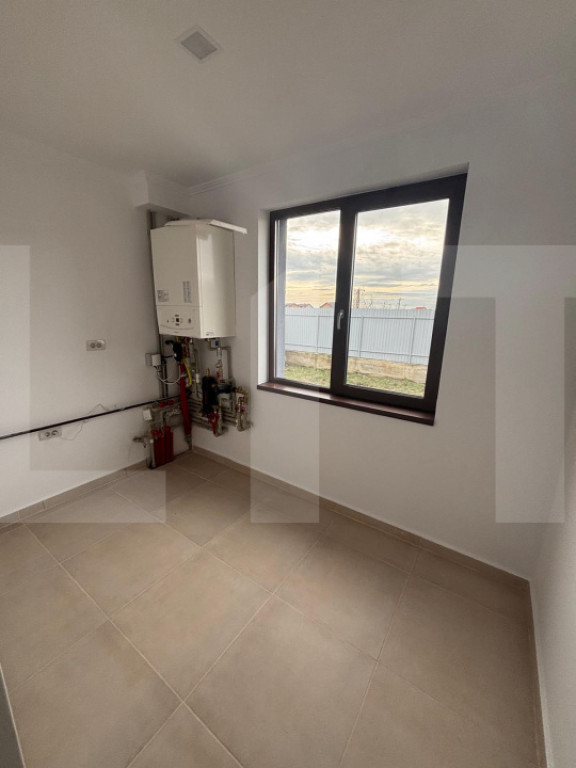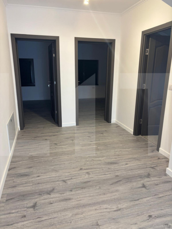 BLITZ vă oferă spre vânzare o casă nouă, tip P+E, finisată complet, situată într-o zonă rezidențială liniștită, ideală pentru locuit, cu acces facil către oraș. Proprietatea are o suprafață utilă de aproximativ 150 mp și este amplasată pe un teren generos de 640 mp, beneficiind de curte proprie, poartă de acces și posibilitatea de parcare pentru până la 3 autoturisme în curte, plus locuri suplimentare în fața imobilului. Casa este construită recent și finalizată cu materiale de calitate, având acoperiș din țiglă, geamuri termopan triplu vitrate și rulouri electrice cu telecomandă, individuale pentru fiecare geam. Imobilul este racordat la utilități, dispune de centrală termică proprie pe gaz cu boiler încorporat și încălzire în pardoseală atât la parter, cât și la etaj, oferind un confort termic ridicat pe tot parcursul anului. Finisajele sunt moderne, realizate cu gresie, faianță și parchet, fiind pregătită pentru mutare imediată. Compartimentarea este practică și bine gândită. La parter regăsim un living spațios cu bucătărie tip open-space (stil american), o cameră, o baie, o cameră tehnică și o cămară, precum și o terasă generoasă de aproximativ 30 mp în partea din spate, ideală pentru relaxare. La etaj se află trei camere și două băi, dintre care un dormitor matrimonial cu baie proprie și dressing, plus încă două camere deservite de o baie separată pe hol. Toate băile sunt dotate cu geam pentru aerisire naturală, cabină de duș, chiuvetă și WC. Proprietatea se remarcă prin spațiul generos, compartimentarea eficientă, dotările moderne și poziționarea într-o zonă rezidențială aerisită, fiind alegerea ideală pentru o familie care își dorește confort, intimitate și o locuință nouă, complet finisată. Cod ofertă / ID BLITZ: P164912 Id intern: P164912