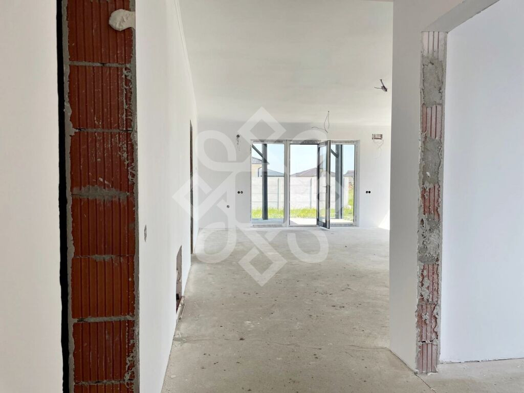 D`Art imob va ofera spre vanzare o casa noua cu teren aferent de 500 mp situata in Santandrei, Bihor. Casa masoara o suprafata utila de 102 mp si este amplasata pe un teren in suprafata de 500 mp. Aceasta este compartimentata astfel: living cu bucatarie open-space, 3 dormitoare, 2 bai si terasa. Unul dintre dormitoare este prevazut cu baie proprie si dressing. Constructia este finalizata in anul 2025, din caramida, cu acoperis de tigla. Aceasta este izolata cu polistiren pe peretii exteriori. Proprietatea dispune de terasa cu o suprafata generoasa de 32 mp. Aceasta se preda semifinisata, astfel: interior gletuit si zugraveala in alb, incalzire in pardoseala, instalatii electrice si instalatii sanitare pe pozitii, geamuri termopan. Ca si utilitati casa dispune de: apa, canalizare, electricitate si gaz. Pretul pentru aceasta casa noua de vanzare in Santandrei este de 135.000 euro. ~~~~~~~~~~~~~~~~~~~~~~~~~~~~~~~~~~~~~~~~~~~~~~~~~~~~~~~~~~~~~~~~~~~~~~~~~~~~~~~ D`Art imob offers for sale a new house with a 500 sqm plot of land located in Santandrei, Bihor. The house measures a usable area of 102 sqm and is located on a 500 sqm plot of land. It is divided as follows: living room with open-space kitchen, 3 bedrooms, 2 bathrooms and terrace. One of the bedrooms has its own bathroom and dressing room. The construction was completed in 2025, made of brick, with a tiled roof. It is insulated with polystyrene on the exterior walls. The property has a terrace with a generous area of 32 sqm. It is delivered semi-finished, as follows: interior plastered and painted in white, underfloor heating, electrical installations and sanitary installations in positions, double glazing. As utilities, the house has: water, sewage, electricity and gas. The price for this new house for sale in Santander is 135,000 euros.