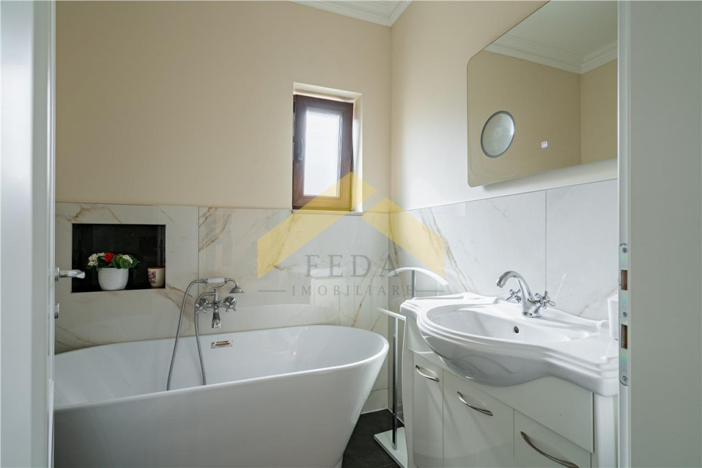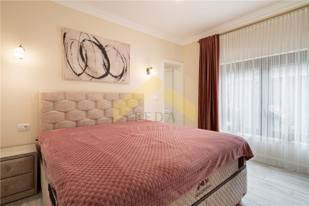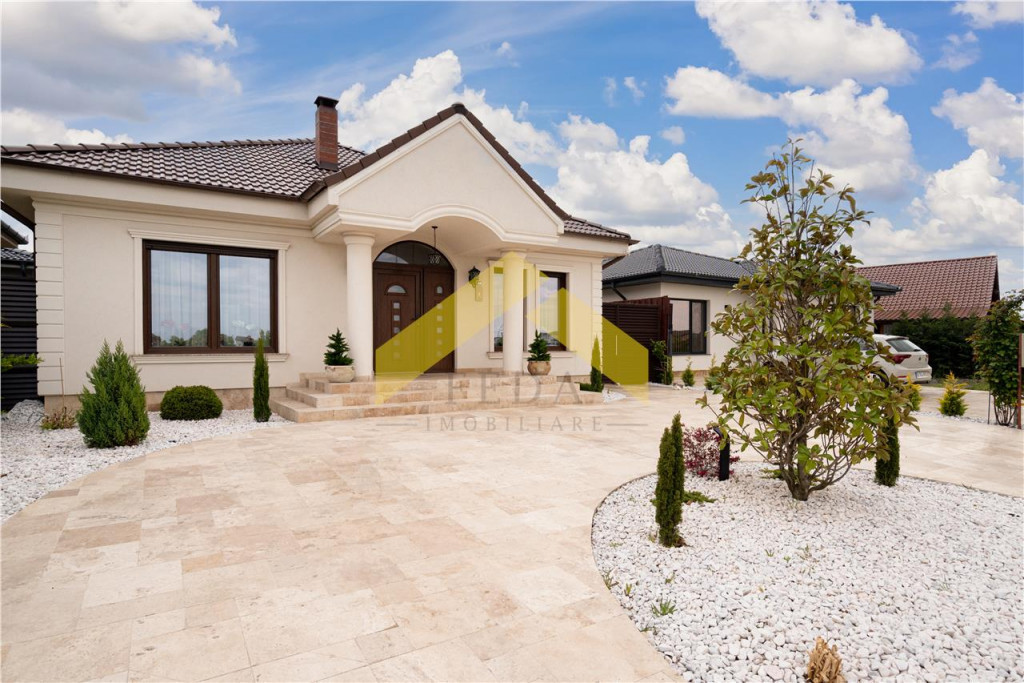 FEDA Imobiliare va ofera spre vanzare o casa de lux la sol, construita in anul 2024, in cartierul rezidential Westfield la doar 5 minute de orasul Arad. Casa este construita pe un teren cu o suprafata de 490 mp cu un front stradal de 14 ml. Casa are o suprafata construita de 160 mp si este compusa astfel: -Un hol spatios-Doua dormitoare din care unul cu baie proprie cu cabina dus si dressing -O baie cu cada-Un living cu semineu -Bucatarie open space cu iesire pe terasa-Spait-Loc de luat masa -Spalatorie-Camera tehnica -O bucatarie inchisa In curte se afla o anexa pentru depozitare, plante ornamentale si o terasa acoperita. Dotari si utilitati: -Centrala proprie pe gaz-Clima-Incalzire in pardoseala-Semineu pe lemne-Fantana forata-Camere de supraveghere-Sistem automat de irigatie pentru gazon si picurator pentru plante -Pavaj de travetin in fata casei si curte -Gaz-Curent-Apa -CanalizareCasa se vinde complet mobilata si utilata. Pentru mai multe detalii sau programarea unei vizionari, nu ezitati sa ma contactati telefonic!!Felix Petru-0723 535 000