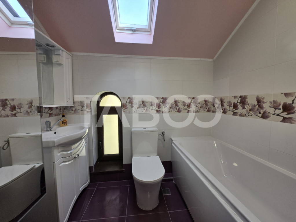 Casa de inchiriat din Sibiu este o casa de tip duplex, cu un regim de inaltime Parter + mansarda.