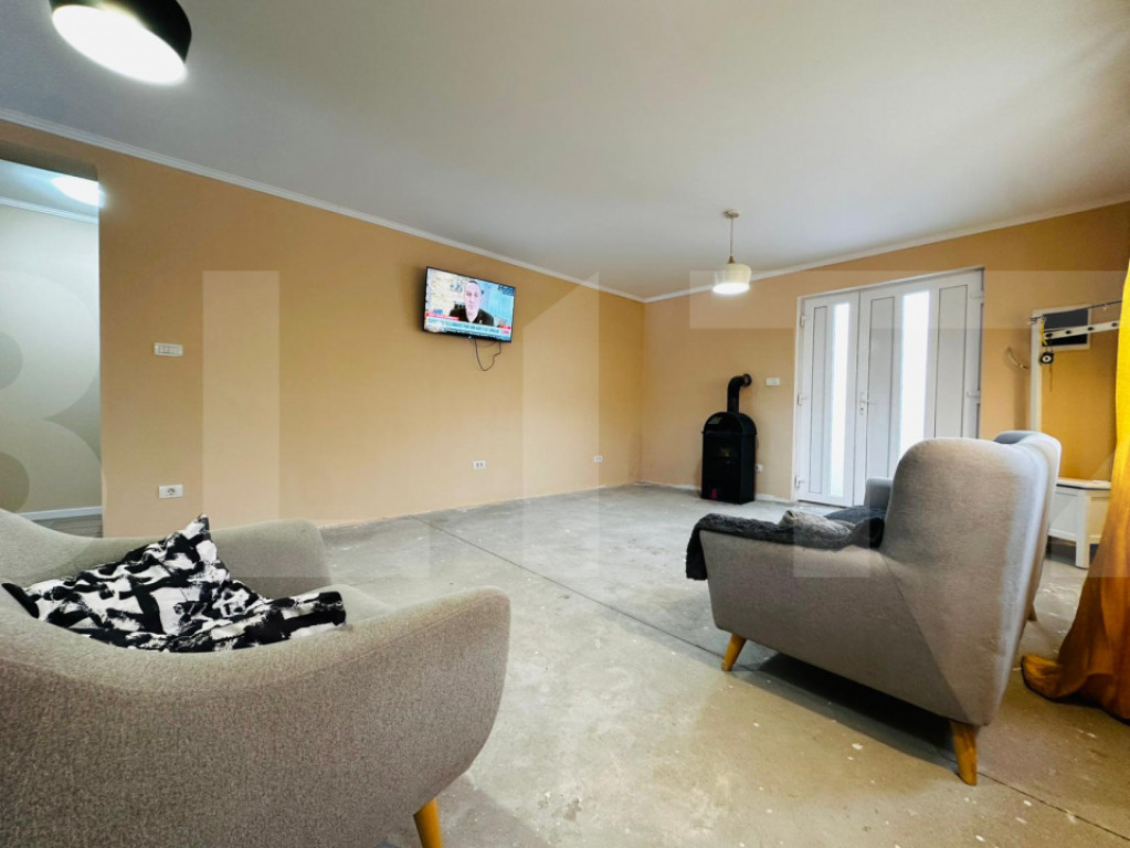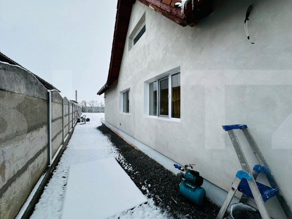 Blitz va propune spre vanzare o casa noua, situata in Arad, cartierul San Paolo, intr-o zona rezidentiala nou construita, linistita si in plina dezvoltare. Proprietatea este partial finisata, oferind viitorilor proprietari libertatea de a-si personaliza spatiul exact asa cum isi doresc. Casa este dispusa pe parter si mansarda. Parterul este functional si aproape complet finisat si cuprinde: • living spatios si luminos • bucatarie • 2 dormitoare • baie • hol si terasa Cele doua dormitoare si baia sunt finalizate, unul dintre dormitoare fiind deja mobilat. Livingul si bucataria sunt la lavabil, necesitand doar montarea pardoselii. Mansarda este la gri si include: • 2 dormitoare • baie • camera tehnica Imobilul este tencuit atat la interior, cat si la exterior si beneficiaza de izolatie, pentru un confort termic optim. Dotari si avantaje: • incalzire in pardoseala atat la parter, cat si la mansarda • pompa de caldura • centrala electrica • horn pregatit pentru semineu • curent trifazic • gard din beton cu porti • geamuri termopan • gazon amenajat • fantana forata Aceasta proprietate este alegerea ideala pentru cei care isi doresc o casa noua in Arad, intr-un cartier modern – San Paolo, cu finisaje de baza deja realizate si libertate totala de amenajare. Pentru mai multe detalii sau pentru programarea unei vizionari, va stam la dispozitie. Cod ofertă / ID BLITZ: P161154 Id intern: P161154