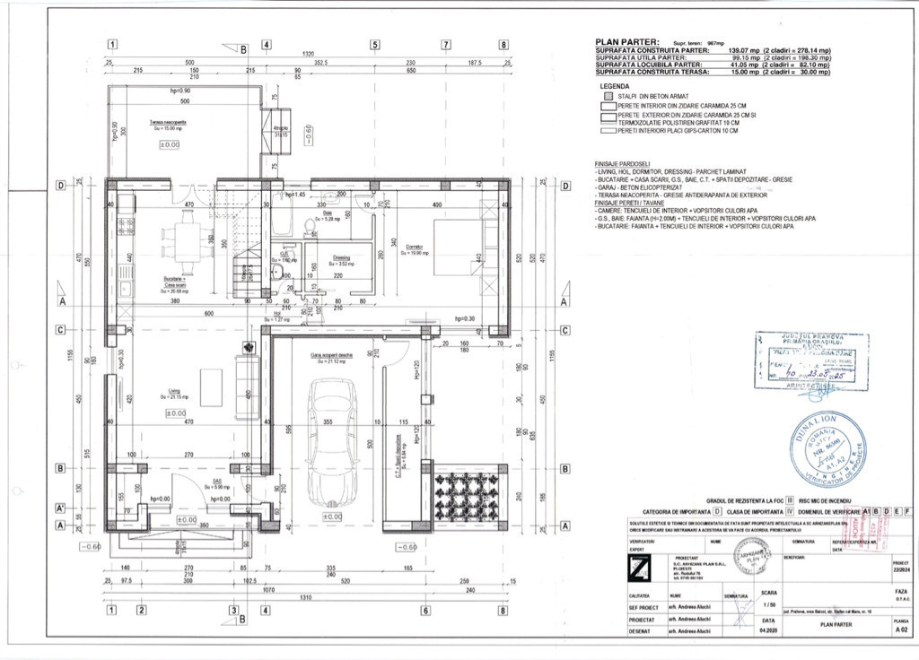 Va propun spre vanzare casa noua in curs de edificare situata in Baicoi ,intr-o zona linistita foarte aproape de DN 1 Acesta proprietate este ideala pentru o familie care doreste multe spatii de depozitare si intimitate fiind construita pe 2 nivele parter si etaj,pe un teren de 490mp,cu o suprafata construita de 260mp astfel: -la parterul este livingul open space cu bucataria , baie de serviciu,dormitor cu baie proprie si dresing, garaj si camera tehnica,total 139.07mp -etajul contine 2 dormitoare generoase fiecare cu propria baie si dressing,birou si uscator dupa cum se poate observa la etaj este construita terasa generoasa in suprafata de 22.54mp total construit etaj 119.93mp Casa este construita pe cadre de beton armat,si zidarie de 30cm grosime Termoizolarea casei s-a realizat cu polistiren grafitat de 10cm ,deasemenea sarpanta este termoizolata cu spuma poliuretanica de 15 cm grosime. Tamplaria este realizata din profile cu 5 camere si geam termopan de 6mm cu model(spross) Incalzirea locuitei se va face prin intermediul unei centrale termice si incalzire in pardoseala. Detin sute de fotografii cu diverse stadii de constructie Casa se poate vinde la cheie sau la gri functie de dorinta noului proprietar Nu s-a facut rabat la calitatea materialelor folosite