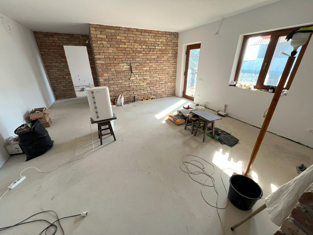 ????CASA intabulata solida NOUA -loc. CATALOI Pret listare -85.000 euro /☎️ 0751.584.242 ‼️Se vinde si prin CREDIT BANCAR ‼️ ANGISS IMOBILIARE iti vinde o casa noua, micuta si solida. Formata din : camera de zi, 2 bai, dormitor si bucatarie. Casa 70mp, si teren 1600mp + anexe Situata in Cataloi la nici 15min de oras. DETALII TEHNICE : Fundație beton armat 140 cm adâncime, Zidarie : pereti bca 25 cm plus 15 cm polistiren grafitat, interior din caramida plina rustica Izolata cu 10 cm polistiren extrudat, Placa beton izolata cu 12 cm polistiren extrudat grafitat, Exterior decorativa scoarța de copac Oskar, Acoperiș din panouri sandwich imitație țiglă antichizata, Pod din lemn cu 30cm izolatie vata knauf expert, INCALZIRE ELECTRICA în pardoseala-dfe firma AMASS Uși și ferestre Barrier cu geam tripan 55mm cu baghetă calda, Instalație apa calda, rece cu teava Tece pe-xc izolată, instalație electrica cupru, tablou siguranțe cu protecții dedicate pentru fiecare circuit Conectata la canalizare In prezent mai sunt de adaugat : usile interioare, parchet/ gresie, sanitarele si o mana de var /lac pe caramida interioara În fata casei este o mica livada pe rod anul 4, în spatele casei terenul este curat. În curte se află o casa de pământ cu rol de magazie. MENTIUNI ! Casa are obtinut procesul verbal de receptie finala, edificarea si intabulare.