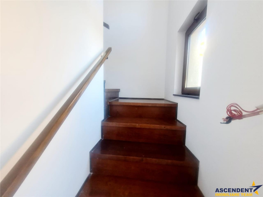Comision chirias: 50 % tva, din contravaloarea unei chiri lunare, o singura data Ascendent Imobiliare Va propune spre inchiriere o vila moderna, situata intr-o zona linistita de case din Sanpetru, ce ofera confort, spatiu si intimitate, la doar 10 minute de Brasov. Va invitam sa experimentati o vizionare initiala, din locatia unde va aflati, chiar acum, prin accesarea turului virtual tridimensional: https://my.matterport.com/show/?m=H86DiL85mpo Constructie noua (2018), recent mobilata, nelocuita, cu o suprafata utila de 110 mp, casa este luminoasa, calduroasa si foarte bine izolata termic. Compartimentare: Parter: Hol generos Living spatios de 30 mp Bucatarie mobilata si complet echipata Baie cu cabina de dus, aerisire naturala Spatiu de depozitare Garaj spatios Camera tehnica Etaj: 3 dormitoare (2 cu pat matrimonial) Baie cu cada si aerisire naturala Exterior: Curte de 500 mp cu gazon ingrijit Terasa acoperita de 30 mp, ideala pentru seri relaxante alaturi de prieteni, la un pahar de vin sau o limonada Avantaje suplimentare: incalzire in pardoseala Izolatie termica eficienta: polistiren exterior 10 cm vata bazaltica interioara 10 cm Zona exclusiv rezidentiala, foarte linistita, Infrastructura excelenta. Aproape de puncte comerciale, scoli, supermarketuri. Acces rapid catre Brasov. Pentru mai multe detalii sau programarea unei vizionari, nu ezitati sa ne contactati! Consilieri dedicati acestei oferte: Nicolaie Pavel Tel/Whapp 0722 500 650 Gilda Georgescu Tel/Wapp 0722 807 623 Detalii, fotografii suplimentare si alte variante similare exclusive: www.ascendentimobiliare.ro