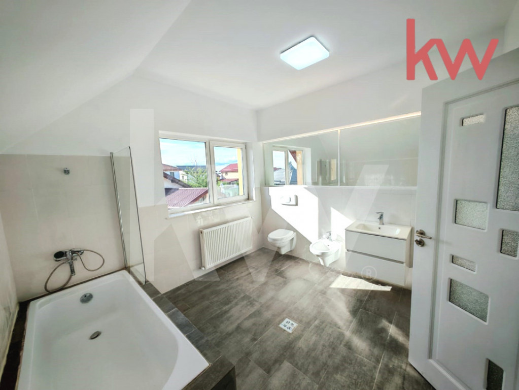 Va propunem spre vânzare o casă nouă cu o suprafață utilă de 140 mp, teren de 395 mp și parcare de 2 locuri. Compartimentare la parter: -living spațios, bucătărie, cameră tehnică, baie, hol. Etaj: -3 dormitoare duble -baie completă cu cadă -hol generos. Utilități & Dotări: canalizare, apă curentă, energie electrică. Incălzire cu centrală electrică Poartă metalică culisanta. În funcție de preferințele viitorului proprietar, se poate asigura, contra cost, montajul și punerea în funcțiune a: pompei de căldură și/sau sistem fotovoltaic. Va așteptăm la vizionare! Id intern: P11804