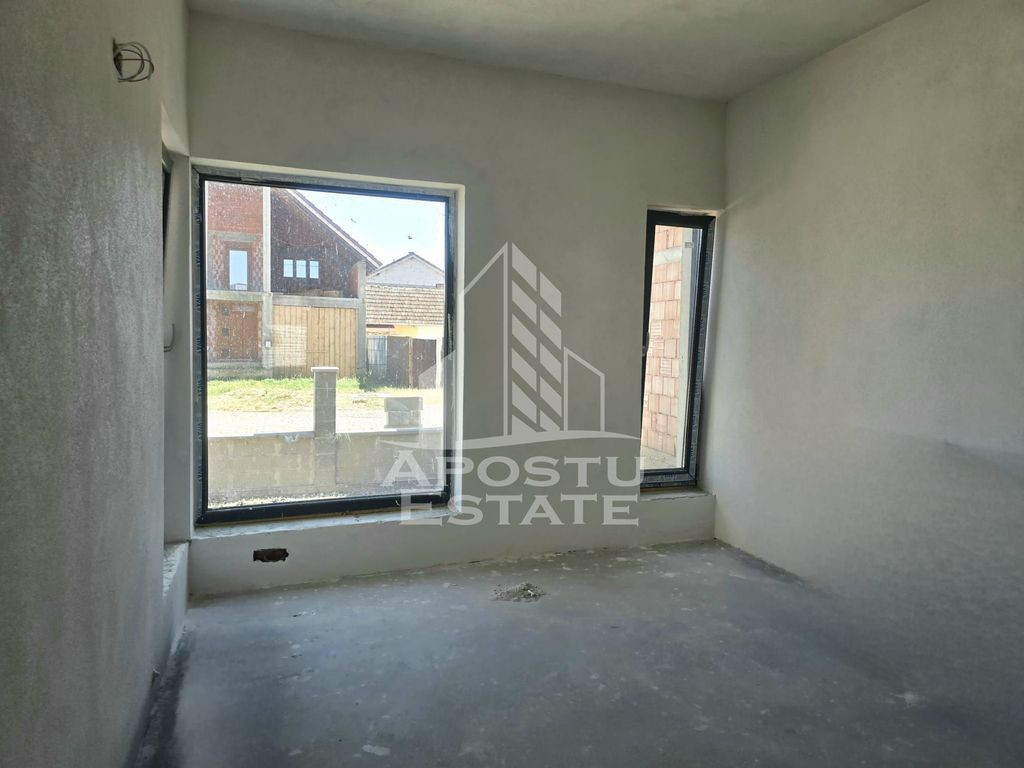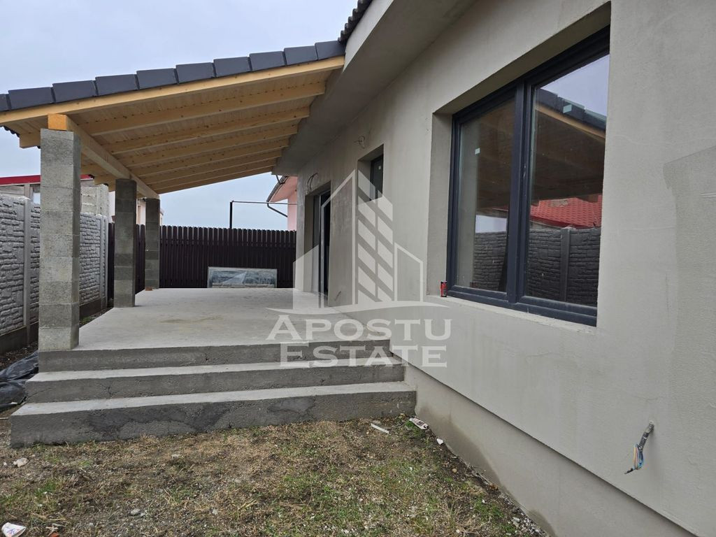 Apostu Estate va propune spre vanzare, in exclusivitate, o casa individuala cu 3 camere, construita in anul 2023, in Cartierul Nou din Curtici, la doar 18 km de Arad. Proprietatea se desfasoara pe o suprafata construita de 100 mp, o terasa acoperita de 24 mp si o suprafata teren de 250 mp. Compartimentare: -hol acces -2 dormitoare -living open space cu bucataria, (posibilitate de inchidere a bucatariei), cu loc de luat masa si iesire pe terasa - 2 bai cu geam de aerisire - dresing -terasa acoperita Constructia este din BCA YTONG cu pereti exteriori de 30 cm, iar cei interiori de 25 cm. Tamplaria este din PVC cu geamuri tripan. Peretii sunt izolati atat pe interior, cat si pe exterior. In pod izolatia este facuta cu celuloza de 15 cm, cu centura de beton de 30 cm grosime si grinzi de lemn. Acoperisul este din tigla. Proprietatea beneficiaza de curent trifazic, apa, canalizare (este facuta si o fosa individuala), gaz. Confortul termic se realizeaza prin intermediul centralei pe gaz, iar incalzirea este in pardoseala.. Pozitie foarte buna. In apropiere se afla scoala, gradinita, magazine. Strada este linistita. Va oferim consultanta si solutii financiare prin colaboratorii nostri! Va asteptam cu drag la o vizionare! CP2275047