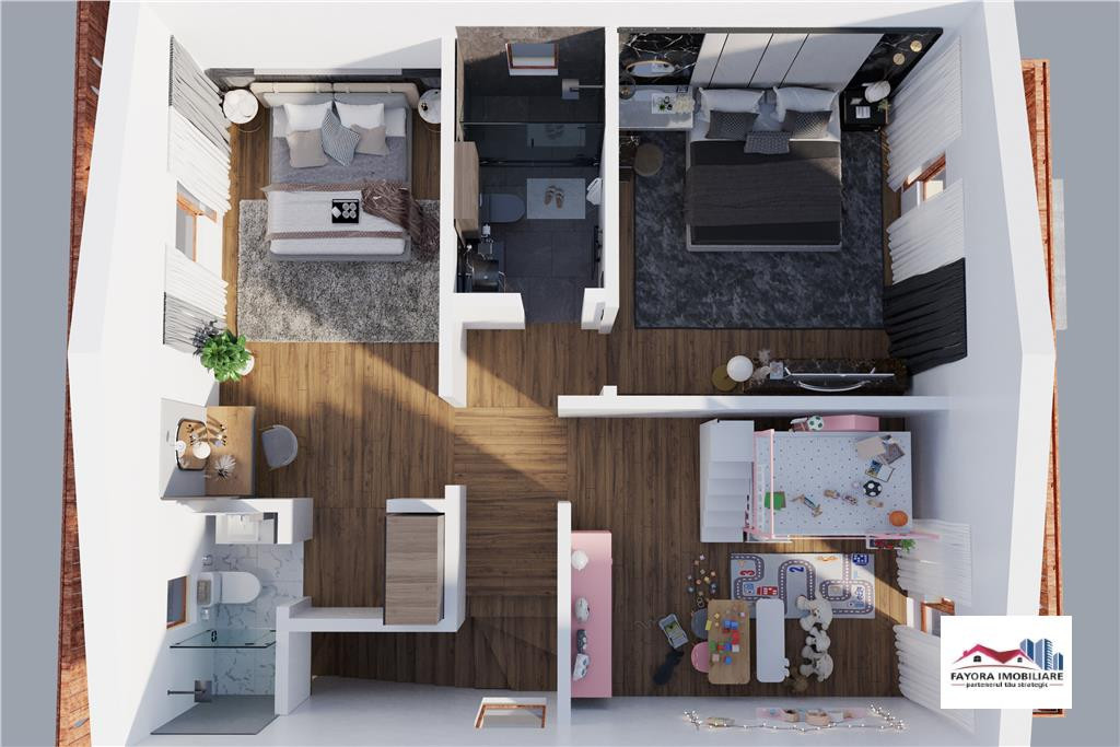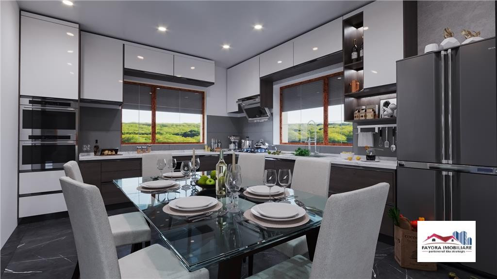 Casa Noua in Stil Bavarez Fayora Imobiliare va ofera spre vanzare un nou proiect de case individuale construite in stil Bavarez situate in apropierea drumului european 15E dupa iesirea din localitatea Voiniceni, unde poti spune si poti simti cu adevarat ca esti Acasa. Pentru reusita acestui frumos proiect imobiliar de case in stil Bavarez de o calitate exceptionala, si-au concetrat efortul si profesionalismul echipa de arhitecti, de proiectare, echipa de dezvoltare a proiectului pe parte de constructii precum si echipa de marketing in urma unor studii de piata atent efectuate. Astfel, s-a reusit realizarea unui proiect pe cat de compact si eficient, pe atat de practic, ergonomic si util, optinandu-se o constructie eficient compartimentata si functionala, cu o arhitectura interioara si exterioara deosebita, unica pe piata imobiliara din aceasta zona. Constructia casei este realizata din structura de beton armat si zidarie din caramida portanta eficienta de 30 cm grosime, sarpanta din lemn fasonat tratat si ranforsat cu termoizolatie exterioara la pereti din polistiren expandat de inalta densitate EPS 80, iar termoizolatia dintre etaj si pod realizata din vata minerala din sticla aplicata in doua straturi succesive (10 5 cm). Fundatia si placa de sol este din beton armat si sunt izolate termic. Sarpanta cladirii este relizata din material lemnos, grinzi de lemn profilat tratate ignifug, iar invelitoarea este din tabla metalica faltuita tip click, sistem de invelitoare modern cu garantie marita. Tamplaria exterioara se realizeza din profile PVC rezistente cu eficienta termica si durabilitate marita, iar sticla tip tripan ndash; 3 coli de sticla cu protectie marita la UV. Tencuiala decorativa aplicata pe termosistem se va realiza din materiale moderne de inalta calitate. Imprejmuirea, poarta de acces pietonal si acces auto, se executa din elemente metalice combinate cu elemente din lemn prelucrate si tratate. Balcoanele relizate din beton armat sunt incununate intr-un stil clasic Bavarez, cu balustarada de protectie si panouri din lemn. Casele vor fi bransate la utilitati, iar pozitiile sanitare si termice interioare fara echipamente, precum si pozitiile instalatiilor electrice sunt realizate la nivelul standardelor occidentale. Suprafata de teren a fiecarui unitati locative este cuprinsa intre 550 ndash; 650 mp, iar predarea imobilelor se va realiza in stadiul semifinisat cu tamplarie exterioara, termosistem si tencuilei decorative exterioare precum si bransamente la utilitati. Pentru eventuale predari in stadiu finisat ldquo;la cheierdquo; se poate face o oferta individuala personalizata. Propunerea financiara si constructiva se face in doua variante: I. Unitate locativa 1: suprafata utila 119,60 mp si suprafata desfasurata 150,70 mp. Parter: terasa 1 ndash; intrarea principala, hol si casa scarii (debara), baie, bucatarie si sufragerie, camara, camera de zi (living) si terasa 2 neacoperita. Etaj: hol si casa scarii, dormitor 1, debara, baie 1, baie 2, dormitor 2, dormitor 3, balcon 1, balcon 2. II. Unitate locativa 2: suprafata utila 181,10 mp si suprafata desfasurata 231,10 mp. Spatiu tehnic/pivnita: 61,50 mp. Parter: terasa 1 ndash; intrarea principala, hol si casa scarii (debara), baie, bucatarie si sufragerie, camara, camera de zi (living) si terasa 2 neacoperita. Etaj: hol si casa scarii, dormitor 1, debara, baie 1, baie 2, dormitor 2, dormitor 3, balcon 1, balcon 2. Pret varianta unitate locativa 1: 120.00