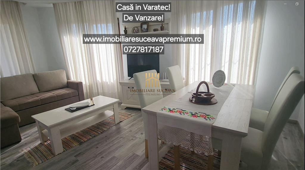 Casa Noua! In Varatec - Suceava! De Vanzare! La 10 km de Orasul Suceava! Interior frumos aranjat! Modern! Parter: mobilat si utilat complet - living, bucatarie, dormitor si baie! Etaj: 3 dormitoare! Etajul nu este amenajat. Apa curenta! Canalizare! Curent electric. Instalatie termica din cupru. Incalzire in pardoseala! Inca nu s-a montat centrala termica. Boiler electric pentru apa calda! Teren: 2000 mp! Pret: 135000 euro! Comision quot;0quot; pentru cumparator! Sprijin gratuit, din partea agentiei, si consiliere pentru realizare actelor de vanzare! Detalii: 0727817187 ID intern: APH720.