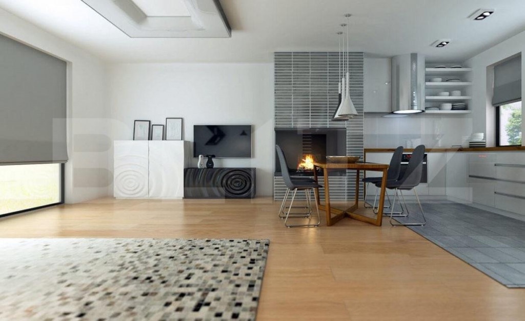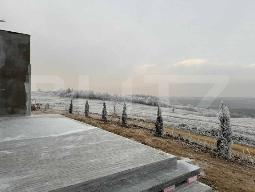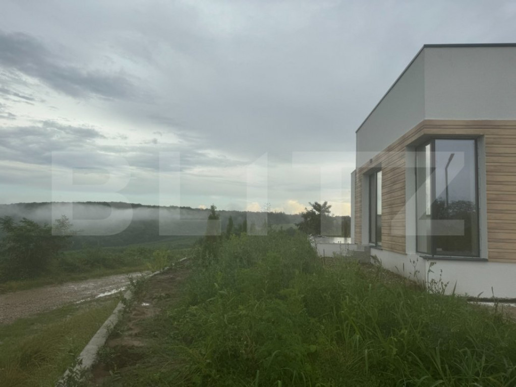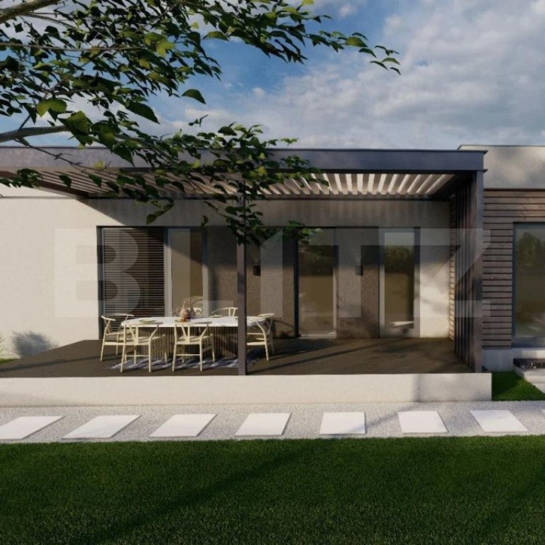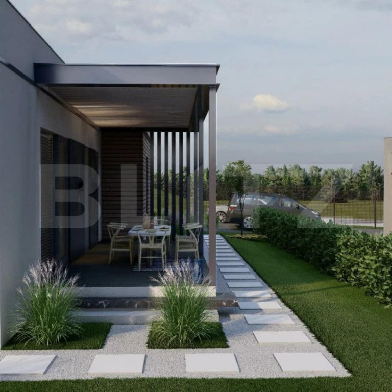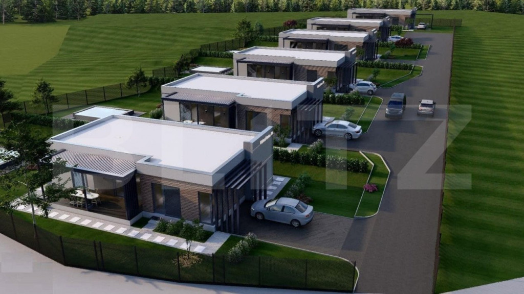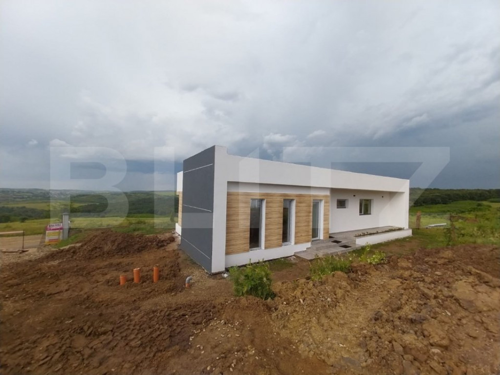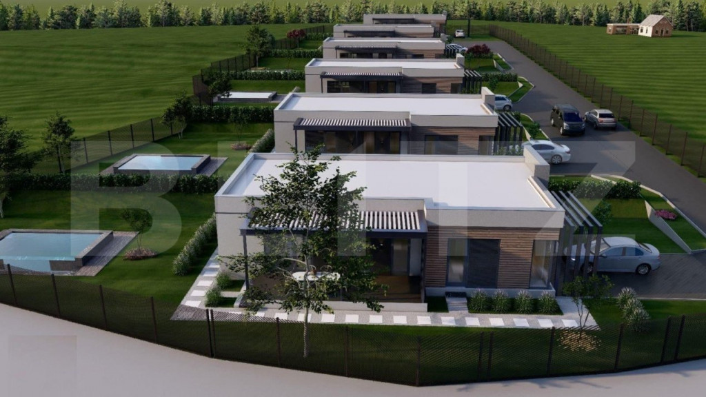 Blitz oferă spre vânzare o casă modernă în afara orașului într-o zonă izolată în inima naturii la doar 8 minute de mers cu mașina până la magazinul Crișul. Casa face parte dintr-un complex de 6 unități locative. Imobilul are o suprafață utilă de 105 mp, iar terenul aferent de 630 mp + 100 mp spațiu în fața casei cu parcare și drum de acces, drum privat de 7 m lățime, cu barieră de acces. Compartimentarea: la intrare un hol, living open space cu bucatarie, 2 dormitoare, 2 băi, cameră tehnică, terasă acoperită. Sistemul de încălzire este cu pompă căldură și cu răcire, cu un consum minim de energie realizată în pardoseală. În jurul casei avem spații exterioare largi și terase generoase. Planul financiar: Plata pe etape de constructie: există posibilitatea de a plăti 35-50% avans, iar diferența în etapele de construcții ce urmează. Plata cu credit bancar. Predarea: după promisiunea de cumpărare făcută și plata avansului este de 4-6 luni. Casele pot fi realizate cu toate dotările SMART ale momentului, așa cum este și prevăzut proiectul. Cod ofertă / ID BLITZ: P9362 Id intern: P9362