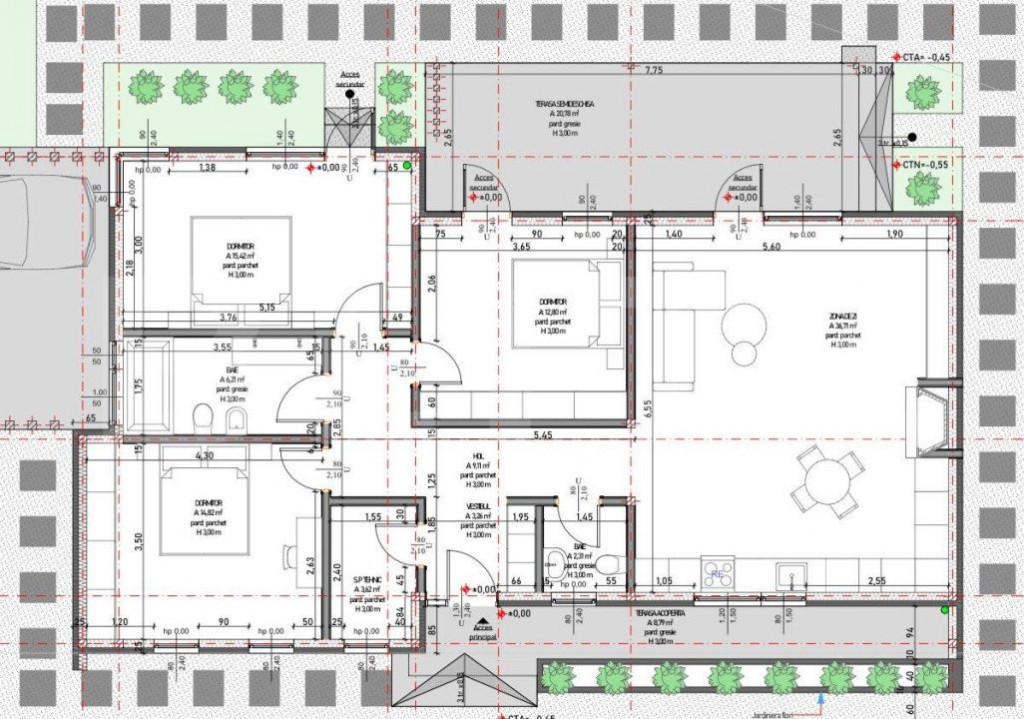 Casă nouă mediteraneană pasivă 3 camere, 105 mp utili, t
