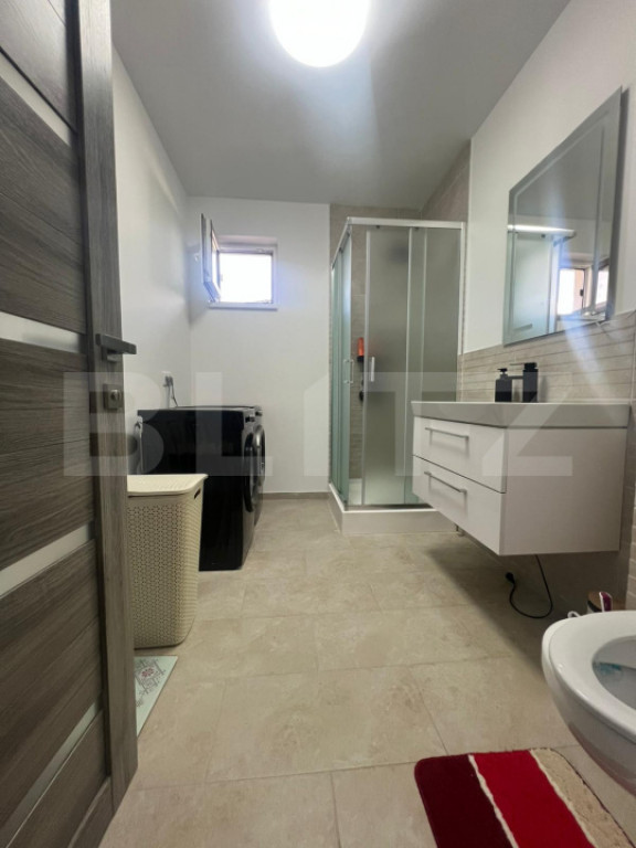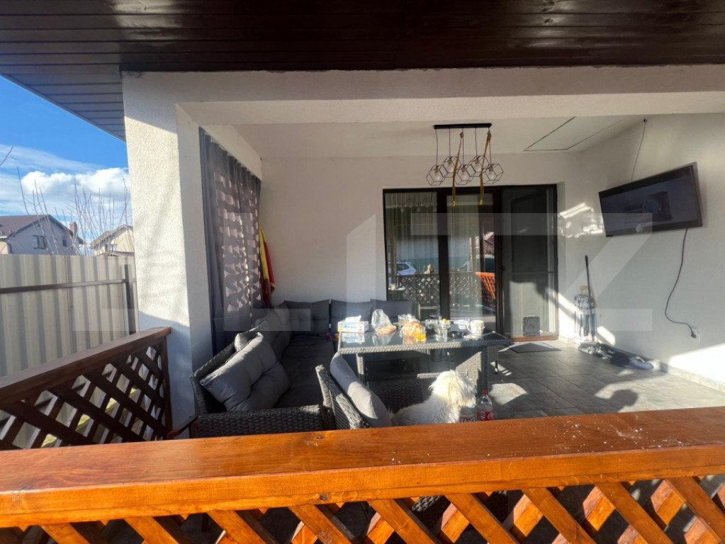 Blitz Imobiliare propune spre vânzare o casă nouă situată într-o zonă rezidențială liniștită din Nazna. Construcția a fost începută în 2022 și finalizată complet în 2025, fiind realizată pe fundație de beton și zidărie din cărămidă. Casa are o suprafață utilă de 100 mp, la care se adaugă o terasă acoperită de 20 mp. Este izolată exterior cu polistiren de 10 cm, dispune de geamuri termopan dublu stratificat, pod izolat cu vată minerală și folie, pod podit, iar acoperișul este din țiglă. Compartimentare: living, bucătărie, două dormitoare, birou (care poate fi transformat în dormitor), două băi, hol, dressing și cămară. Curtea este amenajată și prevăzută cu poartă automatizată. Proprietatea este racordată la toate utilitățile: apă, gaz, curent și canalizare. Casa se vinde complet mobilată și utilată. Locația este una liniștită, într-o zonă rezidențială cu acces facil către oraș și principalele puncte de interes. Vă așteptăm la vizionare. Cod ofertă / ID BLITZ: P157512 Id intern: P157512