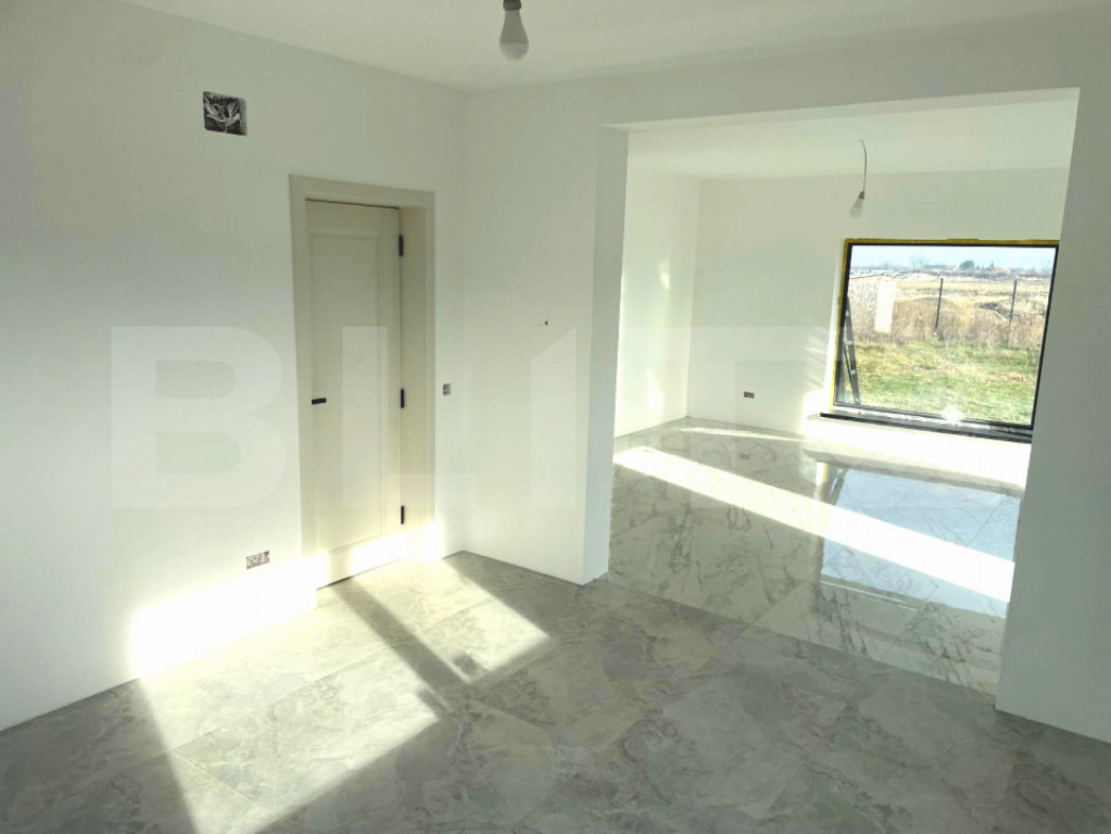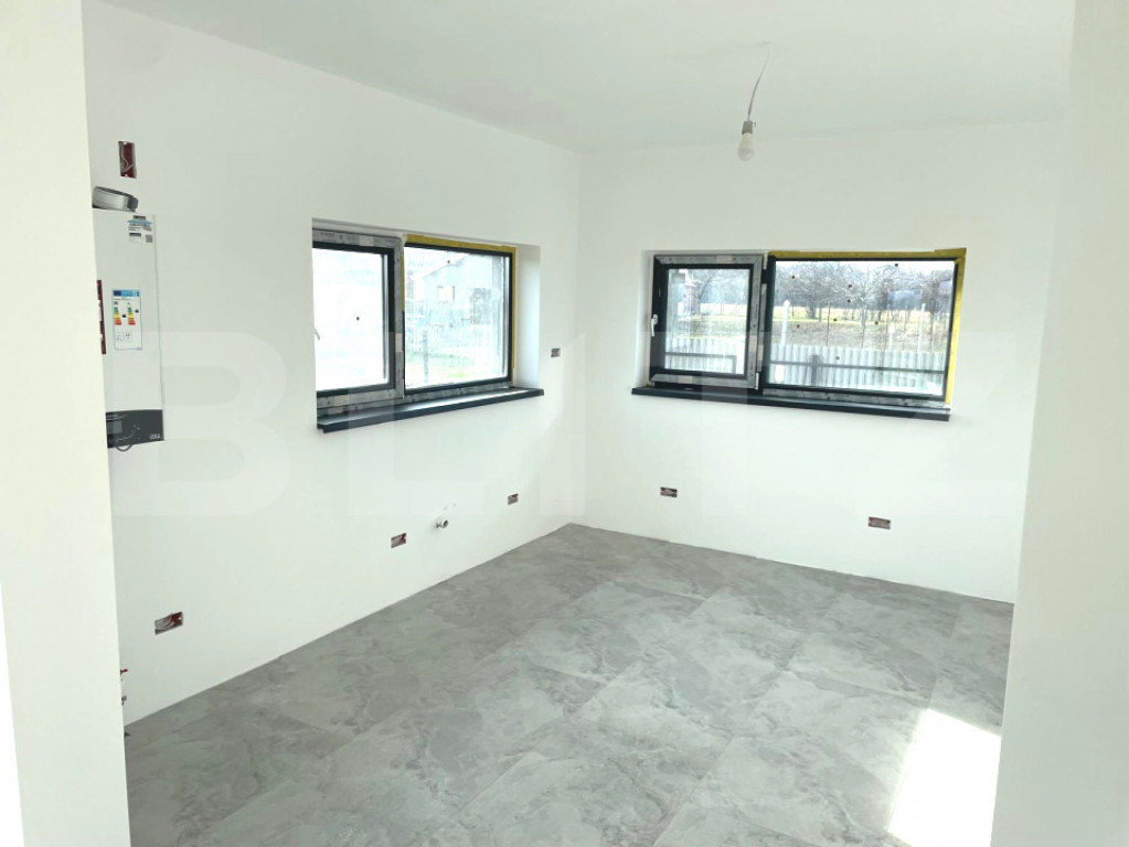 BLITZ va prezinta o casa nouă pe parter cu vedere spre munți – Tărlungeni, Brașov Se vinde complet finisata Preț: 173.000 € Suprafață utilă: 108 m² Teren: 750 m² Număr camere: 4 Tip clădire: singur în curte Stare: gata de utilizare Tip proprietate: locuință nouă Încălzire: centrală pe gaz Proprietatea este situată în comuna Tărlungeni, într-o zonă foarte liniștită și pitorească, cu vedere superbă către munți și acces facil din drumul principal. O alegere perfectă pentru cei care caută liniște, aer curat și confort la doar câțiva kilometri de Brașov. ???? Descriere și compartimentare Casă modernă, pe un singur nivel, construită recent, cu design funcțional și finisaje de calitate. Spațiile sunt bine compartimentate, luminoase și primitoare, oferind un confort ideal pentru o familie. Compartimentare: Living generos și luminos 3 dormitoare spațioase Bucătărie separată 2 băi Hol mare Spațiu tehnic / depozitare ???? Teren și facilități Suprafață teren: 750 mp Curte generoasă, ideală pentru grădină, zonă verde sau loc de joacă Posibilitate de amenajare terasă sau foișor Locuri de parcare în curte ⚙️ Dotări și utilități Încălzire cu centrală pe gaz Fosă septică Construcție solidă, finisaje moderne Ferestre mari pentru lumină naturală abundentă ???? Avantaje ✅ Casă pe un singur nivel – accesibilă și ușor de întreținut ✅ Zonă liniștită, aer curat și priveliște superbă ✅ Teren mare, ideal pentru relaxare sau grădină ✅ Construcție nouă, gata de mutat ✅ Acces rapid către Brașov Cod ofertă / ID BLITZ: P155194 Id intern: P155194
