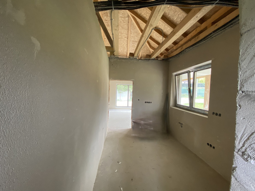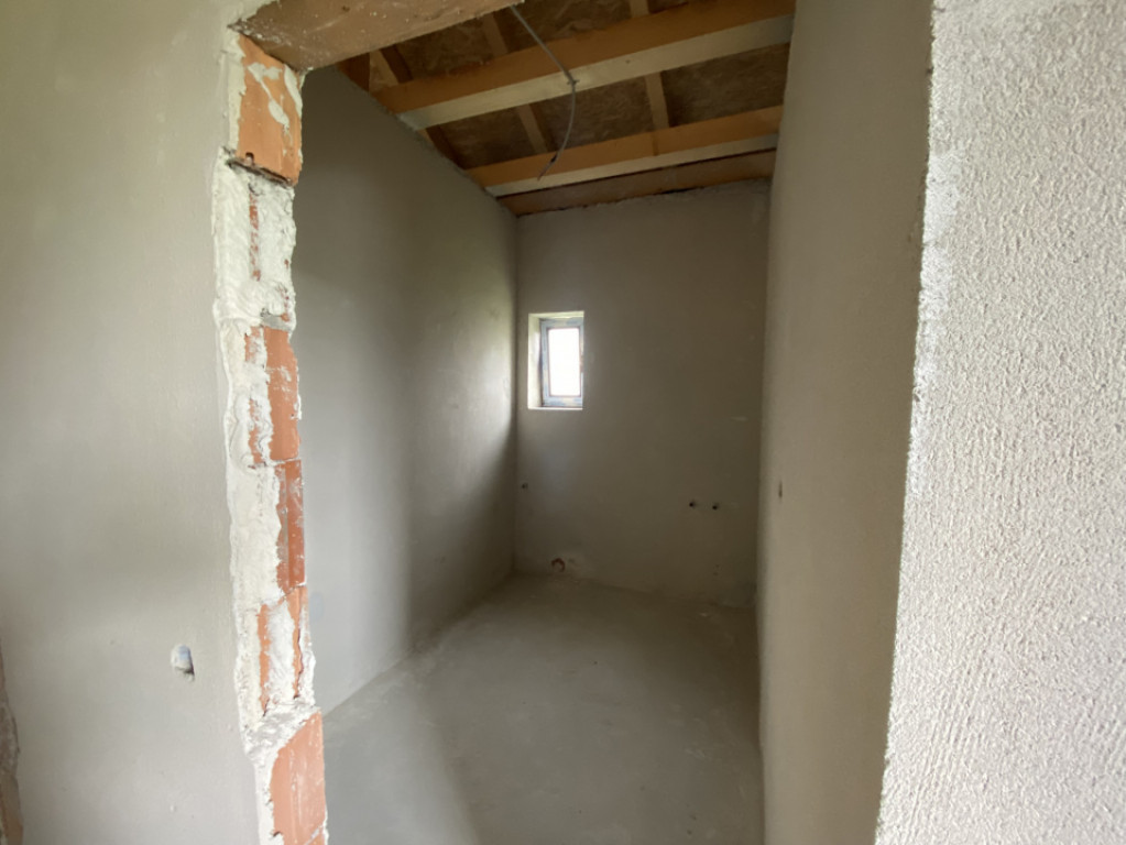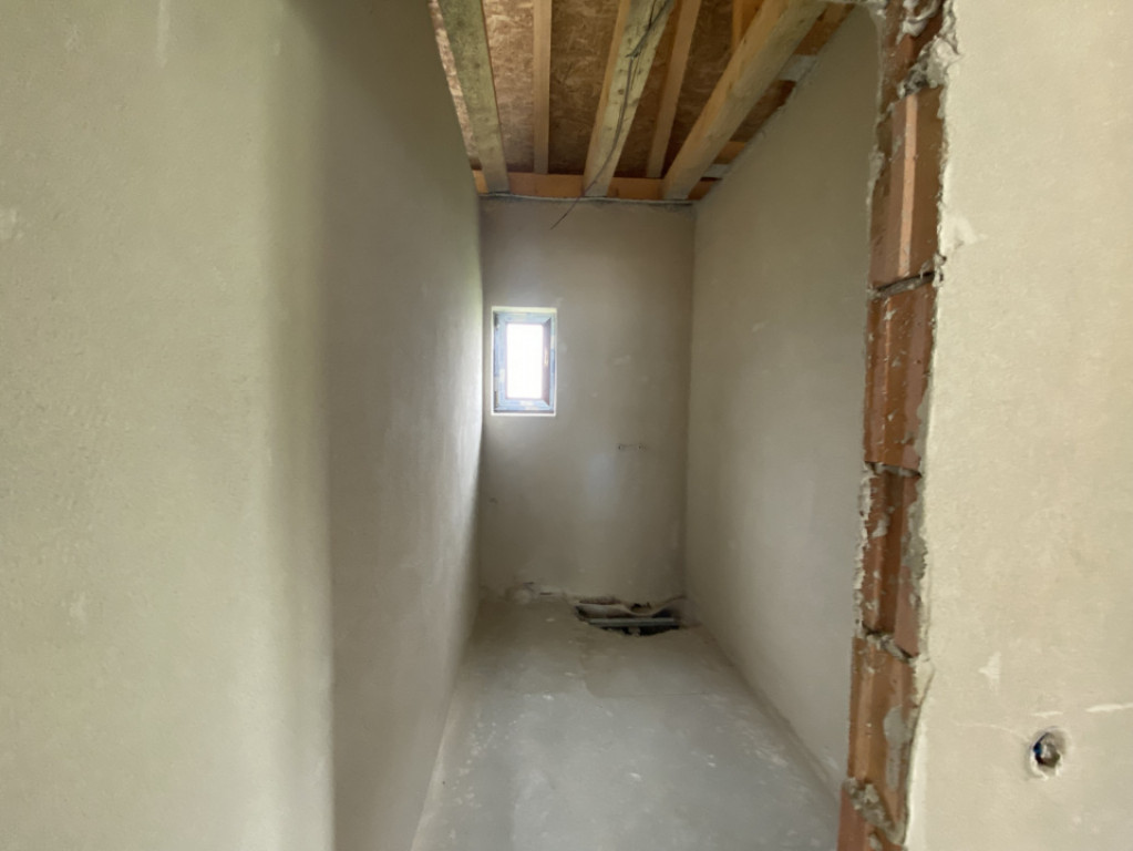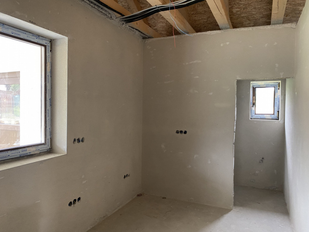 Casa se vinde cu exteriorul finisat, iar interiorul „la gri”, cu instalație pentru încălzire în pardoseală gândită să fie legată la o centrală pe butelie de gaz, și cu plafonul finisat. Este cadastrată și întabulată.