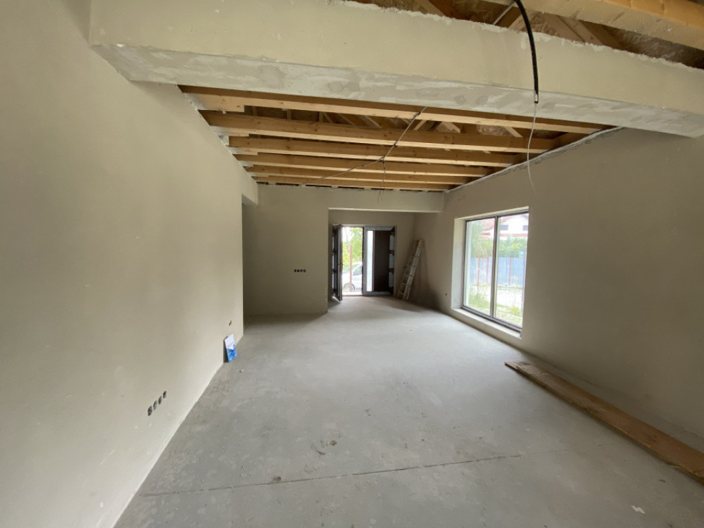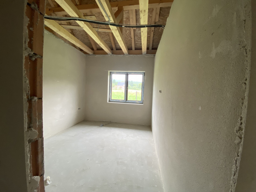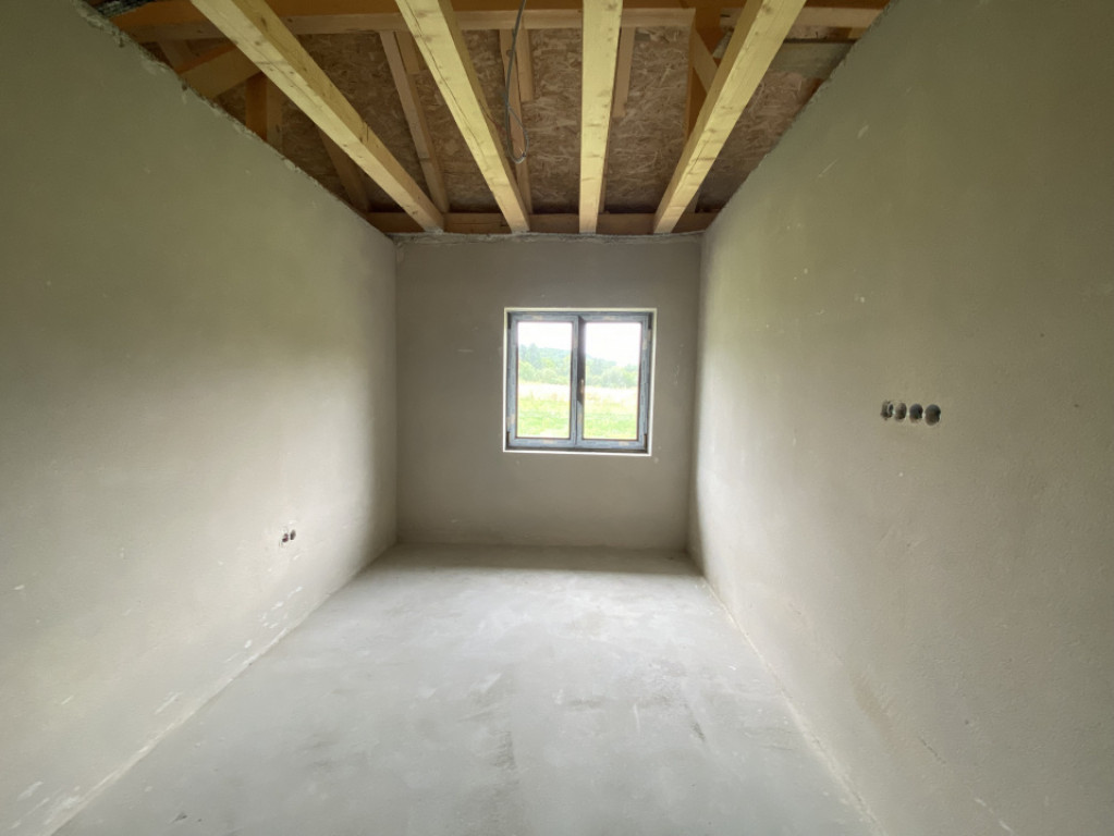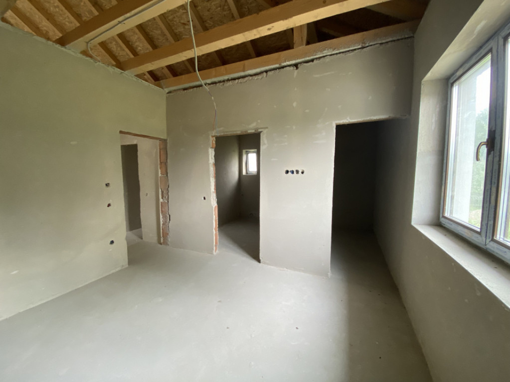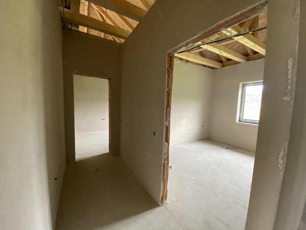 Casa se vinde cu exteriorul finisat, iar interiorul „la gri”, cu instalație pentru încălzire în pardoseală gândită să fie legată la o centrală pe butelie de gaz, și cu plafonul finisat. Este cadastrată și întabulată.