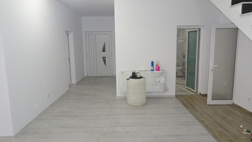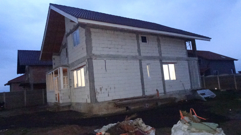 Vand casa noua semifisata in Deva, P+M, zona Zavoi, suprafata totala de teren 719 mp, deschidere la strada de aproximativ 20 metri liniari, acces auto in curte, suprafata construita desfasurata 245 mp, constructie din BCA, acoperita cu pod si tigla. Utilitati: apa, canalizare, curent trifazat si monofazat si GAZ in apropiere. Parterul casei este amenajat cu parchet, gresie, faianta, termopane, marmura pe casa scarii, pregatire pentru termosemineu si este compus din living, bucatarie, camara, doua dormitoare, baie, hol, camera tehnica (pentru centrala) si doua terase. Mansarda este in stadiu de rosu, este compusa din patru dormitoare, hol, baie si doua terase. Curtea este ingradita cu gard de beton si metal. Pret: 210 000 euro neg. Tel: 0724 293226. Mai multe poze si detalii pe www.apartamentedeva.ro sau la Agentia Imobiliara Ovidiu Deva.