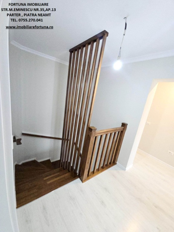 PROPRIETATE PIATRA NEAMȚ – CASĂ NOUA, MODERNĂ TIP DUPLEX LA ALB/LA CHEIE ȘI TEREN 250 MP, ÎN CARTIER EXCLUSIVIST MUN. PIATRA NEAMȚ - DE LA 157.000 EURO Dacă vreți să trăiți cu sentimentul că vă aflați cu adevărat ACASĂ, FORTUNA IMOBILIARE oferă spre achiziționare această proprietate, situată în intravilanul municipiului Piatra Neamț, în zonă rezidențială - oază de liniște, relaxare și comuniune între vecini. Proprietatea este compusă din suprafața de 250 mp teren, pe care este edificată o casă cu regim de înălțime P+E, ce se evidențiază prin designul modern, calitatea construcției, dar și prin buna compartimentare a spațiilor interioare și exterioare, pentru a oferi viitorilor proprietari un maxim de confort și siguranță. Casa, construita in anul 2025, suprafața utilă de 136 mp, este construită cu materiale premium și tehnologii de ultimă generație, pentru a beneficia de avantaje tehnice remarcabile : fundații din beton armat; zidărie din cărămidă Porotherm, termosistem exterior integral cu polistiren extrudat de 15 cm, tâmplărie ADF cu sticlă de 52 mm, de calitate superioară - marca ADF, ce asigură confort termic și fonic; acoperiș din tablă Bilka, cu garanție extinsă și protecție la intemperii; instalații electrice și sanitare realizate după ultimele standarde de siguranță sistem de încălzire în pardoseală pe ambele niveluri, pentru un confort termic uniform și eficiență energetică; centrală termică în condensare, cu consum redus. • Dotări Premium: Glafuri și terasă din marmură, pardoseli din gresie și parchet triplu stratificat, uși interioare, riflaje la mâna curentă a scării interioare, pregătire pentru pompă de căldură (aspect critic pentru viitor) și pod izolat cu vată bazaltică și podea de scândură. • Zidărie: Peretele despărțitor de 35 cm între case oferă o izolare fonică superioară față de duplexurile standard. • Exterior: Terasa vine cu foișor și grătar zidit incluse, ceea ce economisește timp și bani pentru amenajările ulterioare. Casa este compartimentata astfel : La Parter : living generos și luminos, baie de serviciu, cameră tehnică bucătărie cu spațiu pentru dining și acces către terasa spre curtea interioara si parcare; La Etaj: hol, trei dormitoare spațioase ( două prevăzute cu dressing ), baie, balcon tip terasa; Podul, pe toata suprafața casei, izolat, cu acces din interior, este ideal pentru depozitare. Curtea interioară deține 2 locuri parcare, zona barbeque cu grătar pe cărbuni zidit, blat de lucru și plită pe gaz. Exista posibilitatea de amenajare a unui foișor exterior acoperit. Proprietatea este conectata la toate utilitățile : apă, canalizare, electricitate, gaz metan. Locuința asigură versatilitate, putând fi personalizată după preferințele și limitele bugetare ale noilor proprietari, care au libertatea completă de a alege tipul de finisaje interioare: culoarea pereților, gresia și faianța, tipul de parchet, obiectele sanitare, ușile interioare și multe alte detalii. Locuința va fi predată în stadiul de glet și var alb, oferind posibilitatea de a transforma spațiul conform viziunilor și exigențelor, fără compromisuri și abateri de la detaliile tehnice și calendaristice. Prețul variază în funcție de stadiul lucrărilor și nivelul de personalizare ales, locuința putând fi achiziționată LA ALB sau LA CHEIE. ???? Variante de Preț: • 157.000 EUR ( LA ALB ): Include structura finalizată, instalațiile pe poziție, instalațiile termice (inclusiv încălzirea în pardoseală), pereții pregătiți pentru finisaje (glet și var alb) și utilitățile racordate. Este opțiunea ideală dacă vrei să îți alegi singur gresia, faianța, obiectele sanitare, parchetul, ușile și alte materiale preferențiale. • 180.000 EUR ( LA CHEIE ): Include finisajele interioare premium, bucătăria mobilată și utilată. Este varianta "fără bătăi de cap". Pentru o prezentare detaliată a acestei oferte, furnizarea unor informații suplimentare referitoare la situația juridică / identificarea imobilului și programarea unei vizionări, vă invităm la sediul nostru, Fortuna Imobiliare, situat pe str. M. Eminescu, nr. 35, ap. 13, parter, lângă fostul Tribunal, tel. contact 0755.270.041. Your comfort is our priority ! Oferta noastră completă o găsiți aici: https://imobiliarefortuna.ro/
