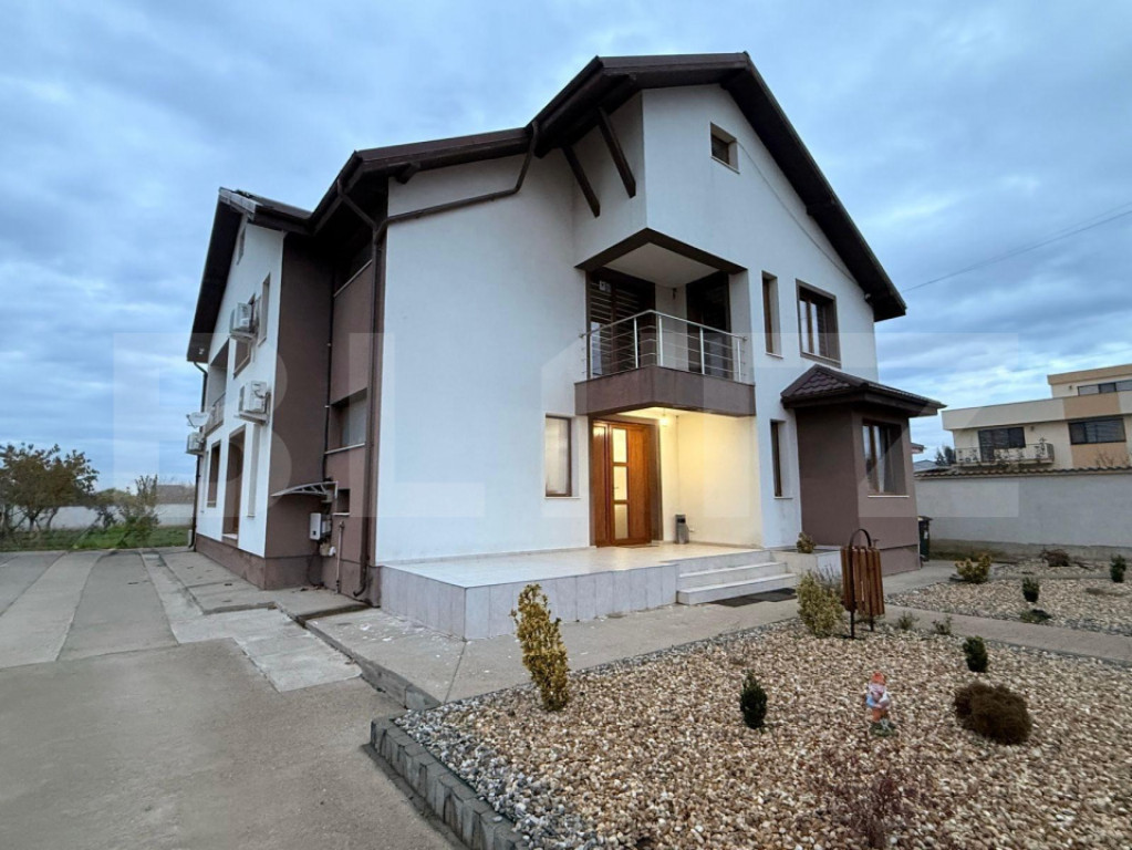 Blitz propune spre vânzare o casă cu regim de înălțime P + E și pod înalt mansardabil cu o suprafață utilă de aproape 300 mp (281,48 mp), construită pe o un teren de 1.025 mp, în zona Ford. Casa a fost construită cu simț de răspundere în anul 2017, din cărămidă Porotherm, cu acoperiș de tablă, izolată termic, cu toate utilitățile, centrală pe gaz și încălzire în pardoseală, inclusiv un kit de panouri fotovoltaice de 2 x 10 kw care reduce aproape de zero costurile de întreținere. Imobilul nu a fost construit pentru vânzare, este folosit pentru un business de producție ușoară putând avea mai departe destinații atât de birou/producție/depozitare, cât și rezidențială, fiind ușor de recompartimentat. Compartimentarea actuală se prezintă astfel: - la parter avem hol, bucătărie, baie, birou (35 mp) și camera principală de peste 67 mp, cu două terase, una în față și una în partea din spate a casei - la etaj regăsim hol, 3 dormitoare, 2 băi, 2 dressing-uri și 3 balcoane - podul este amenajat cu placă și șapă turnată și are o înălțime generoasă, care permit amenajarea acestuia inclusiv ca spațiu locativ. Curtea este amenajată cu platformă și alei betonate, plante ornamentale, mini livadă de pomi fructiferi și foișor de 40 mp în partea din spate. Proprietatea se accesează ușor pe drumuri asfaltate, deschiderea este de 22 m, avem porți automate, sistem de alarmă și supraveghere video. Te aștept la vizionare pentru a vedea în ce măsură imobilul prezentat se potrivește afacerii tale, eventual și cu o zonă rezidențială. Cod ofertă / ID BLITZ: P159251 Id intern: P159251