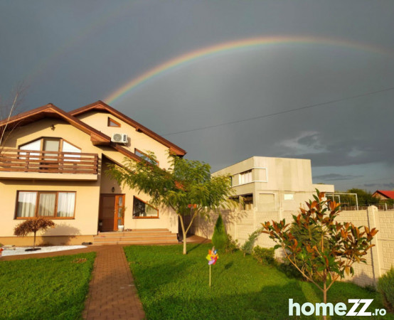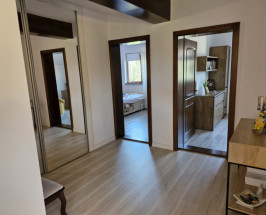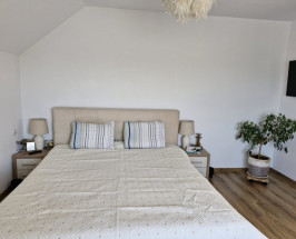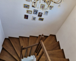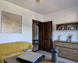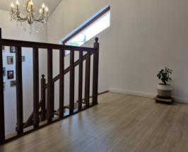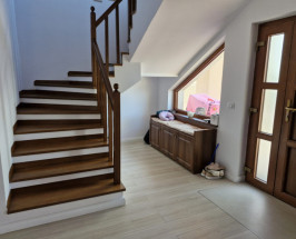 Proprietatea este compartimentata dupa cum urmeaza: la parter regasim un living spatios, bucatarie, baie, iar la etaj regasim 3 dormitoare (unul dintre acestea fiind transformat in birou de lucru) , dressing si baie, si de asemenea si un balcon cu iesire din dormitorul principal, de asemenea scara interioara si usile interioare sunt realizate din lemn masiv de pin.