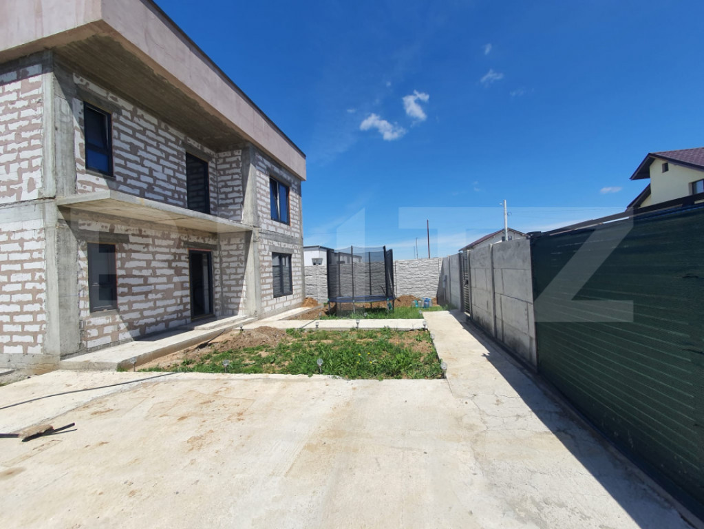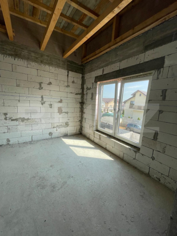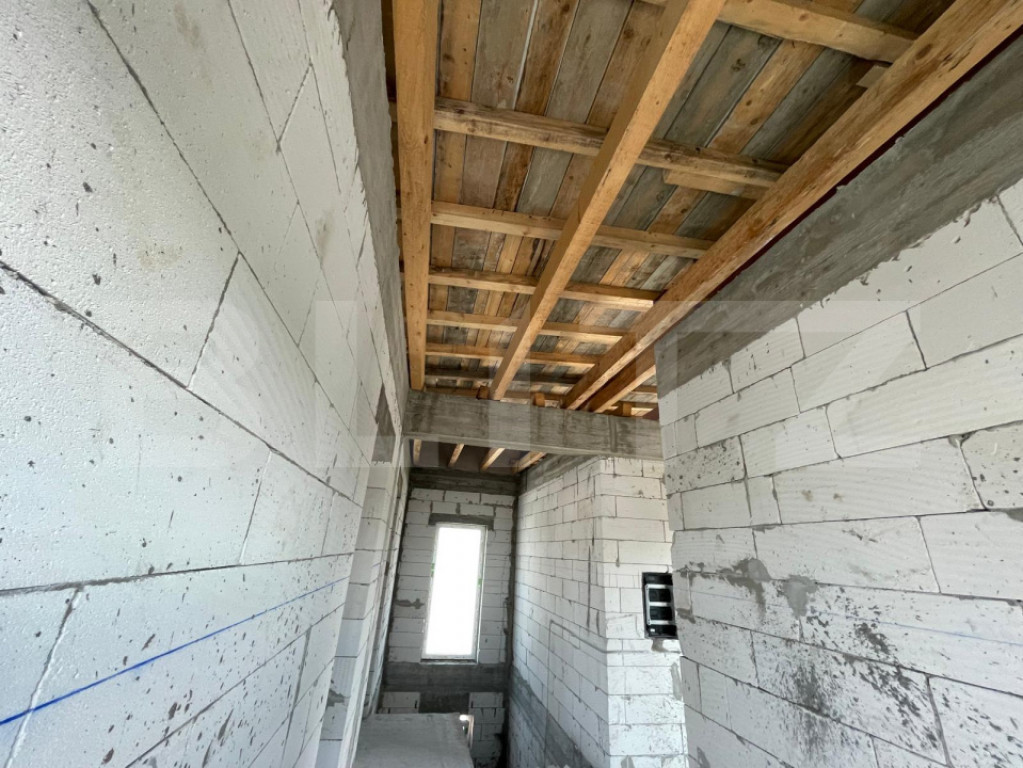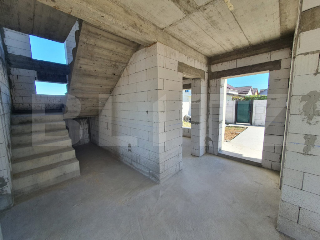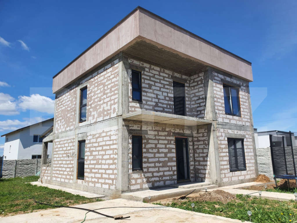 Blitz va prezinta o casa confortabila și moderna, situat într-o zonă liniștită si accesibila. Casa are o structură din BCA, cu grosimea pereților exteriori de 30 cm, oferind o izolație termică excelentă. Pentru structura casei, stâlpi de susținere dubli și grinzile din 6 bare cu grosimea de fi 16, s-a folosit betonul B250 Mitliv. Fiecare fereastră este dotată cu tâmplărie din termopan QFort Premium 7Stars, tip tripan, de culoare gri antracit, asigurând un coeficient de izolare termică care îți va reduce costurile la utilități. Proprietatea dispune de curent trifazic, inclusiv priză pentru încărcarea mașinii electrice. Sistem de împământare cu 4 stâlpi și utilități necesare, cum ar fi apa, sunt deja conectate. Terenul are o suprafață de 470 mp, cu deschidere de 16 m și lungime de 30 m, împrejmuit cu un gard solid de beton și porți metalice culisabile. În curte sunt amenajate alei, iar drumul pietruit de 9 metri lățime este cedat primăriei, asigurând un acces facil. Suprafața utila 140 mp, este impartita intre parter și etaj 1. Camerele au înălțimi de 3 metri, oferind un sentiment de spațiu și aerisire. La parter avem o impartire: living si bucatarie separata, ambele avand iesire pe terasa din spatele casei din care avem acces la camera tehnica, baie si un dormitor sau birou. La etaj gasim: 3 dormitoare, baie, plus un spațiu ideal pentru dressing sau loc de joacă pentru copii, cu două balcoane ce oferă priveliști plăcute. Această casă a fost construită cu atenție la detalii și materiale de calitate, având un stadiu de finalizare care permite personalizarea interioară conform dorințelor tale. Este o oportunitate excelentă pentru oricine dorește un cămin confortabil și durabil. Nu rata ocazia de a viziona această proprietate! Contactează-ne pentru mai multe detalii și pentru a programa o vizionare. Te așteptăm cu drag! Cod ofertă / ID BLITZ: P149868 Id intern: P149868