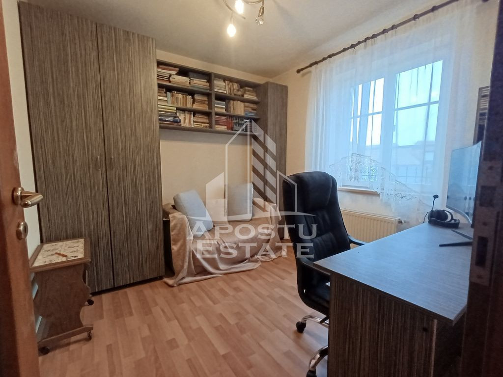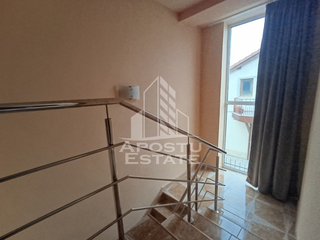 APOSTU ESTATE va ofera spre vanzare o casa cu 5 camere, curte proprie si terasa, situata in zona Mehala. Aceasta casa cu o suprafata de 147 mp dispune de urmatoarele facilitati si este compartimentata astfel: PARTER: -Camera de birou/ dormitor copil; - Bucatarie spatioasa, complet utilata, cu loc de luat masa; -Zona de dining - Sufragerie luminoasa, cu acces la terasa si curte; -Baie cu dus; - Baie de serviciu si geam pentru ventilatie naturala. ETAJ: -Dormitor matrimonial -Dormitor cu acces la balcon; -Dormitor mobilat; -Dressing; -Baie dotata cu cada si geam pentru aerisire naturala. Confortul termic este asigurat de centrala proprie pe gaz. Imobilul se bucura de o pozitionare privilegiata, oferind acces rapid la diverse puncte de interes din zona: - Iulius Mall; - Centrul orasului; - Statii de transport in comun; - Supermarketuri precum Kaufland si restaurante populare precum Mc Donald's; - Sala de fitness Gym One; Va invitam cu drag sa programati o vizionare pentru a aprecia personal toate facilitatile si avantajele acestui imobil.