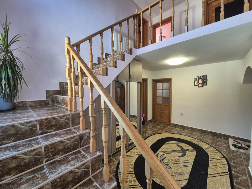 ID/COD ofertă: P1114 Domina Imobiliare vă propune spre vânzare casă situată în Târgu Jiu, pe strada Șișești, într-o zonă liniștită, ferită de agitația urbană, dar cu acces rapid către principalele puncte de interes ale orașului. Casa cu regim de înălțime P+1, dispune de o suprafață utilă totală de 158 mp și este amplasată pe un teren generos de 769 mp, având deschidere la stradă de 17 m.l. Parterul impresionează printr-un living luminos și aerisit, o bucătărie complet mobilată și utilată, o baie dotată cu cabină de duș și un hol spațios prevăzut cu dressing generos și spațiu de depozitare sub scară, realizat pe comandă. La etaj se găsesc trei dormitoare spațioase, fiecare cu balcon propriu, două dintre acestea beneficiind de vedere panoramică spre stradă, iar unul cu vedere către curtea interioară și grădină. Etajul este completat de o baie și un hol generos. Proprietatea oferă multiple facilități suplimentare: două garaje încăpătoare (unul dintre ele prevăzut cu rafturi pentru depozitare), foișor din lemn complet amenajat cu zonă de relaxare, fântână, bucătărie de vară, baie exterioară recent construită, solar pentru cultivarea legumelor și beci sub casă, ideal pentru depozitare. În curte se află și un leagăn din lemn, perfect pentru momentele de odihnă. Curtea pavată se îmbină armonios cu zona verde, iar grădina este amenajată cu pomi fructiferi și arbuști ornamentali, creând un cadru plăcut pentru relaxare și activități în aer liber. Casa beneficiază de centrală termică pe gaze, uși interioare din lemn și tâmplărie din aluminiu cu geam termopan precum și acoperiș din țiglă, fiind pregătită să ofere confortul dorit unei familii care caută liniște și funcționalitate, fără a renunța la proximitatea față de oraș. Se oferă spre achiziție parțial mobilată și utilată! Id intern: P1114