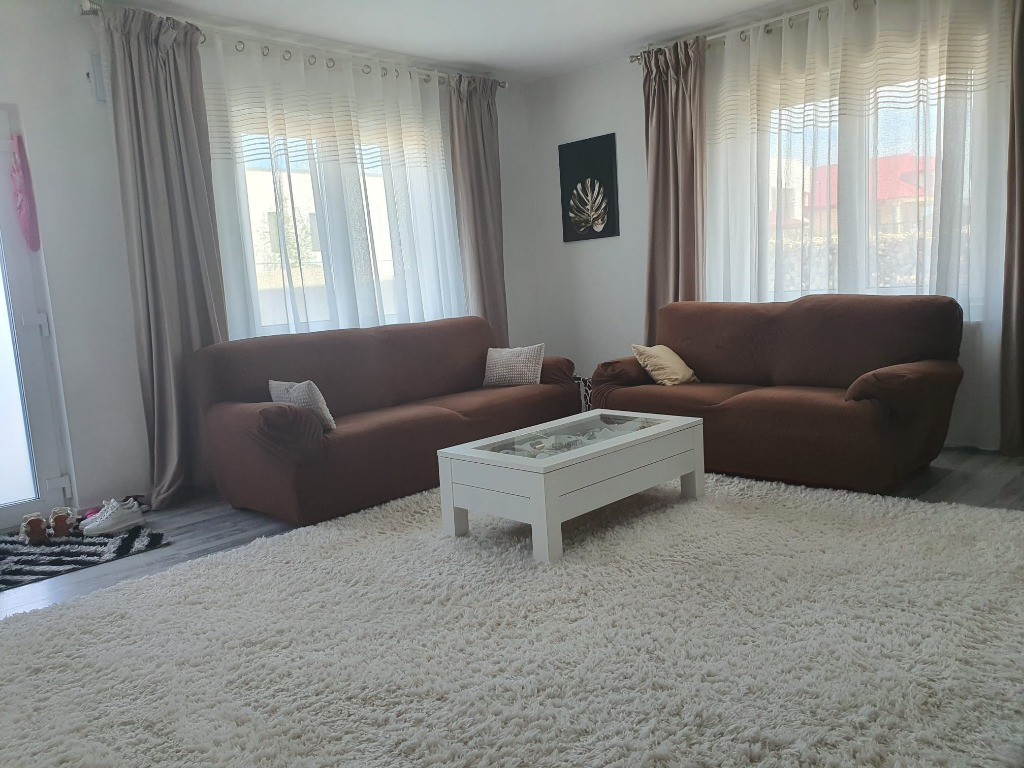 E6 Exclusivitate Va propunem spre achizitie Casa P+M zona KM avand un teren in suprafata de 350mp,amprenta casei fiind de 163mp.Casa este compusa din 3 dormitoare+living,baie bucatarie,garaj la parter iar mansarda este necompartimentata,Constructie noua din BCA,centrala termica,acoperita cu tigla Bilka,placa turnata intre etaje,imbunatatiri de actualitate,cadastru,intabulare,se vinde mobilata,utilata la pretul de 210000 euro.Ptr mai multe detalii apelati la 0752194792