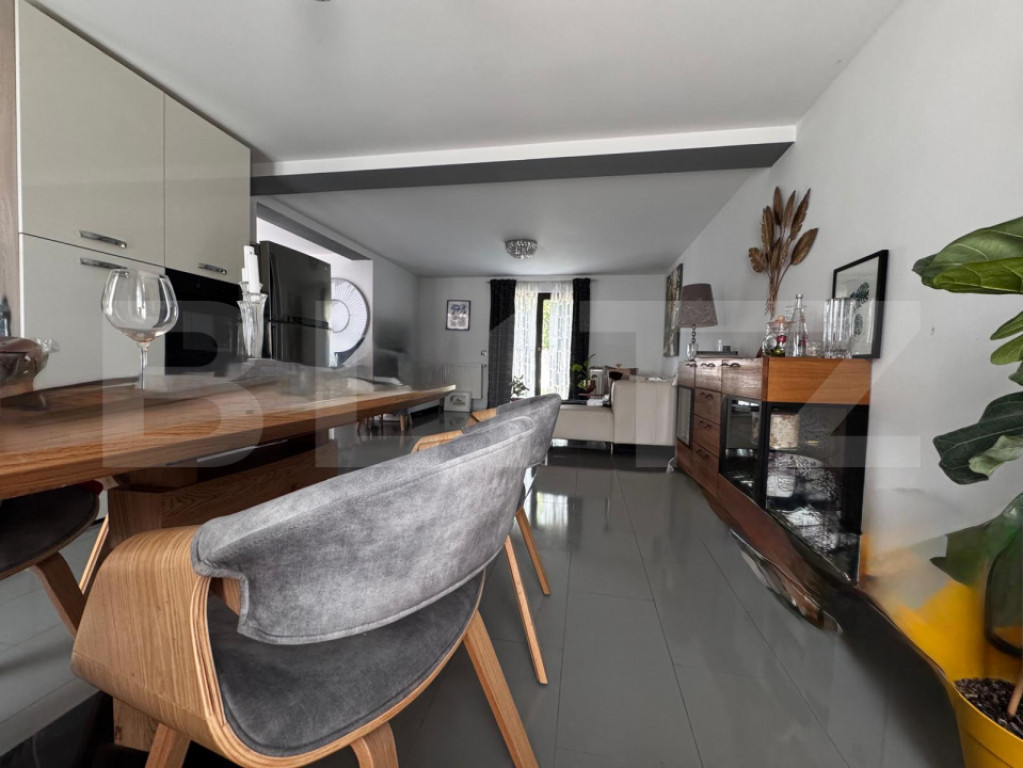 Blitz va propune spre vanzare o casa P+1 , parte dintr-un duplex finalizat in 2017, 201 mp teren, zona Damila. Se vinde complet mobilată și utilată, situată într-o zonă liniștită, ideală pentru locuință permanentă sau casă de vacanță. Proprietatea dispune de două surse de încălzire, centrală electrică și șemineu pe peleți, oferind confort pe tot parcursul anului. La parter se află un living open space cu bucătărie și ieșire în curtea din spate, iar baia este amplasată pe partea stângă a holului. La etaj se găsesc două dormitoare și o baie, spațiile fiind bine compartimentate și luminoase. Construcția este realizată din cărămidă și acoperită cu tablă Lindab, având o suprafață utilă de aproximativ 90 mp. Curtea este amenajată atât în față, cât și în spate, oferind un spațiu plăcut pentru relaxare. Ca si utilități, casa dispune de apă și curent electric, fosă septică, iar gazele și canalizarea se află la aproximativ 200 de metri, pe strada principală. Imobilul se vinde complet mobilat și utilat, fiind gata pentru mutare imediată. Pentru mai multe detalii, va asteptam la vizionare! Cod ofertă / ID BLITZ: P156369 Id intern: P156369