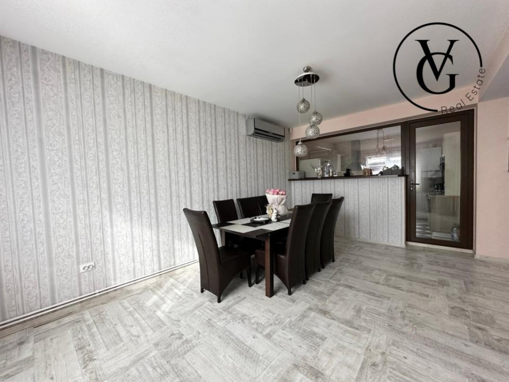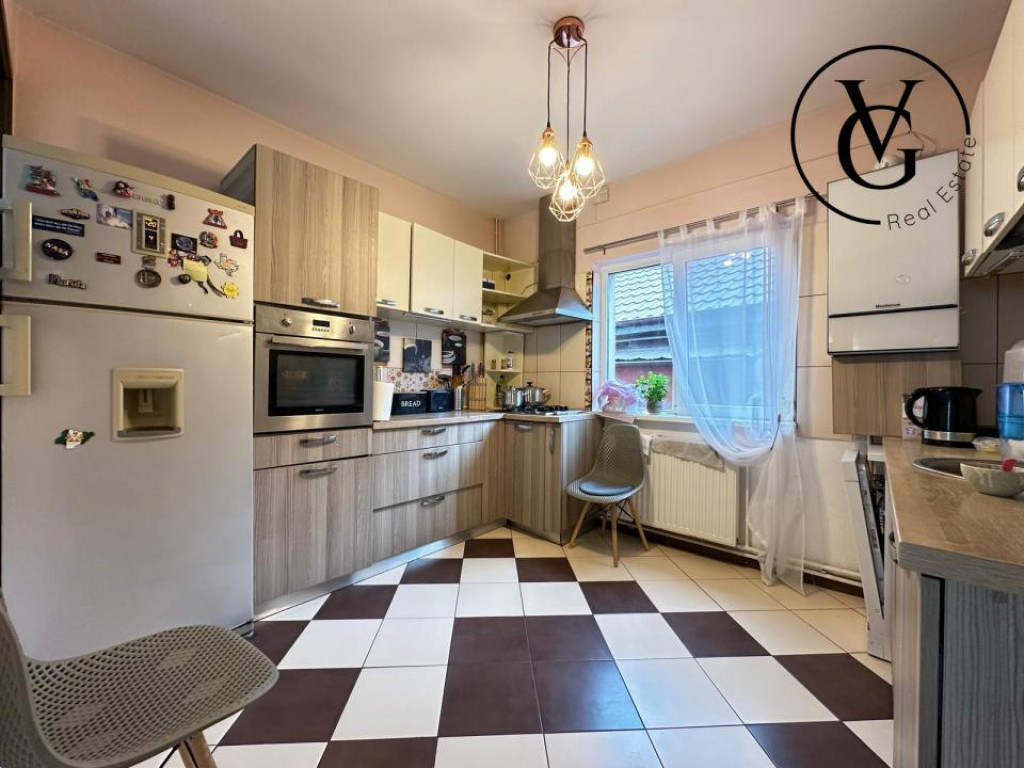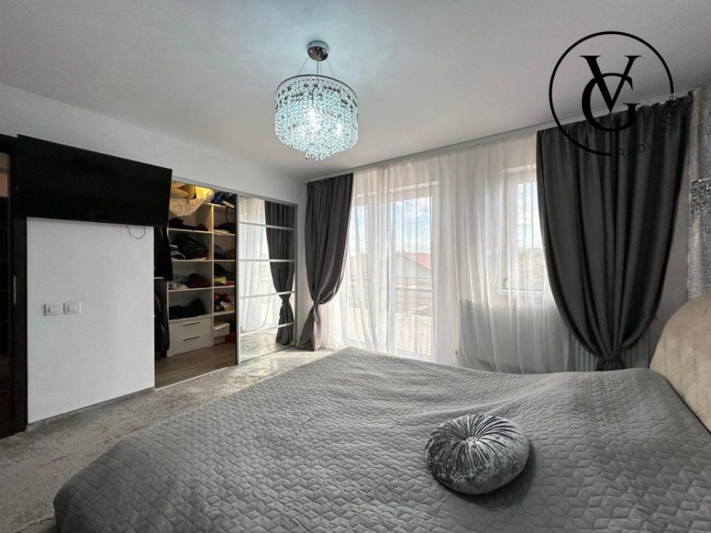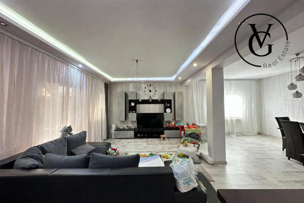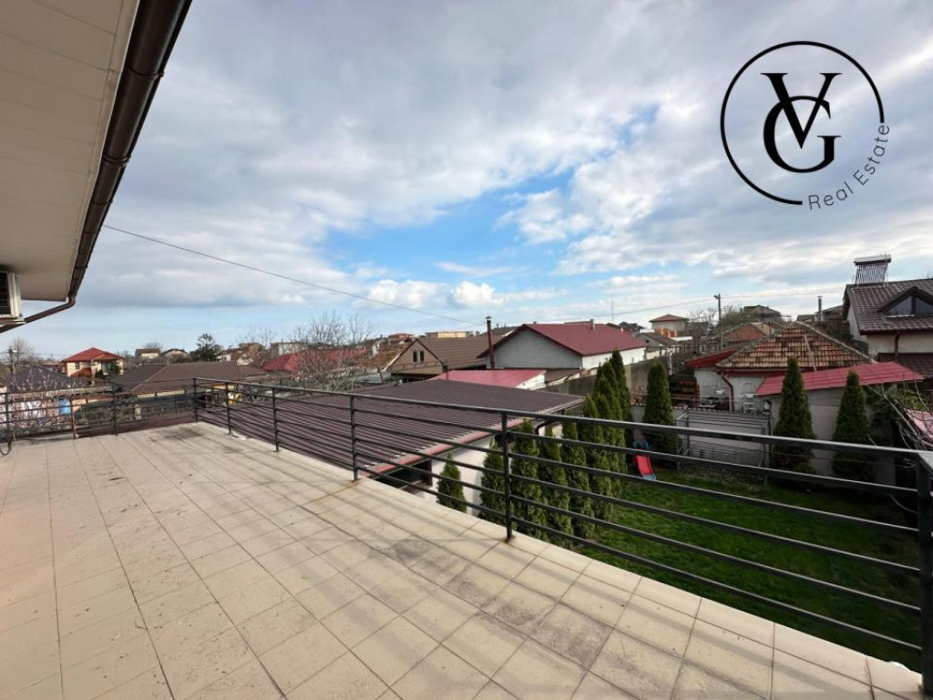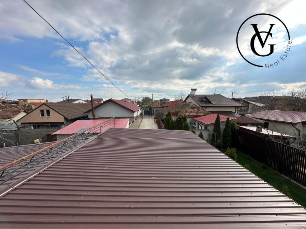 VG Real Estate va propune spre vanzare cu comision 0% pentru cumparator, o casa P+1 compartimentata astfel: Parter: 65 mp Hol, living, dining, bucatarie inchisa, baie cu dus, camera technica. Terasa 19.5mp, garaj 45mp. Etaj : 65mp 2 dormitoare matrimoniale cu dressing, 1 dormitor, hol, baie cu cada, terasa 33mp, pod circulabil + scara escamotabila. Teren 408 mp/ deschidere stradala 4 ml Sistem securitate cu alarma, videointerfon, camere supraveghere cu stocare perioada lunga si facilitate cartela telefon pt a fi sunat. Aditional: magazie stocare CASA SE VINDE MOBILATA SI UTILATA. Dotari: 2 TV Sonny Bravia, 2 aere conditionate, bucataria full echipata, masina spalat vase, centrala termica Buderus Magazie scule etc. Casa dispune de pod înalt, cu potențial de amenajare ca spațiu locuibil. Pretul este negociabil. Pentru mai multe detalii si pentru a stabili o vizionare, nu ezitati sa ma contactati. Id intern: P147798