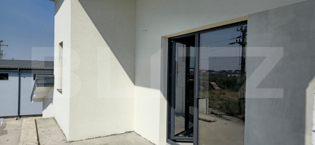 Blitz va propune spre achizitie o propietate moderna P+E, amplasata pe un teren de 582 mp, aflata in zona Metro/Aeroport. Locuință Versatilă: Perfectă pentru familie, 3 dormitoare dintre care: un dormitor la parter cu baie proprie; baie de serviciu, spatiu tehnic, bucatarie, living generos cu iesire intr-o terasa ce dispune de incalzire in pardoseala, ce v-a fi inchisa in sticla iar suprafata utila totala va ajunge la 152 mp; la etaj regasim 2 dormitoare, baie, spatiu de depozitare si o terasa generoasa. Constructie realizata din BCA Ytong, izolata cu polistirent de 15 cm, izolație de calitate care asigură confort termic și eficiență energetică, incalzire in pardoseala ce deserveste o suprafata utila totala de 152 mp, tocarie PVC Salamander cu sticla Barier. Curte generoasă, spațiu exterior vast, ideal pentru relaxare sau activități în aer liber, dispune de utilitati precum apa si canalizare ce se afla in fata terenului. Proprietatea se afla intr-o zona linistita și în plină dezvoltare, cu acces facil catre oras si punctele de interes. Casa se v-a preda la stadiul de alb, urmand ca viitorul propietar sa isi poata pune amprentra asupra finisajelor interioare. Cu mai multe detalii va asteptam la vizionare! Cod ofertă / ID BLITZ: P132226 Id intern: P132226