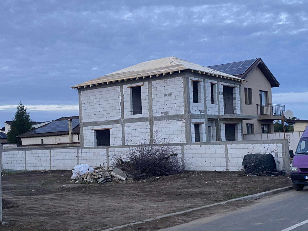Proprietar, ofer Casă de vânzare P+1E ,160m2 construiți ,izolată cu polistiren de 10 și tencuită la interior. Casa dispune la parter de: -baie de serviciu -debara -bucătărie închisă -Living cu ieșire pe terasă în spatele casei La etaj: - 3 dormitoare - baie - 1 balcon la strada Teren 256m2 cu posibilitatea extinderii cu inca 256m2 in spatele casei. Imobilul se afla in vecinătatea Liceului,grădiniței ‘Paradisul Copiilor’ și a Complexului Sportiv Centenar (2 minute de mers),magazine alimentar,La doi pași Casa este ridicată și în curs de finalizare,se preda la alb -148000. Mai multe detalii se pot oferi la telefon sau la vizionare. La cerere se pot pune la dispoziție video cu etapele construirii.