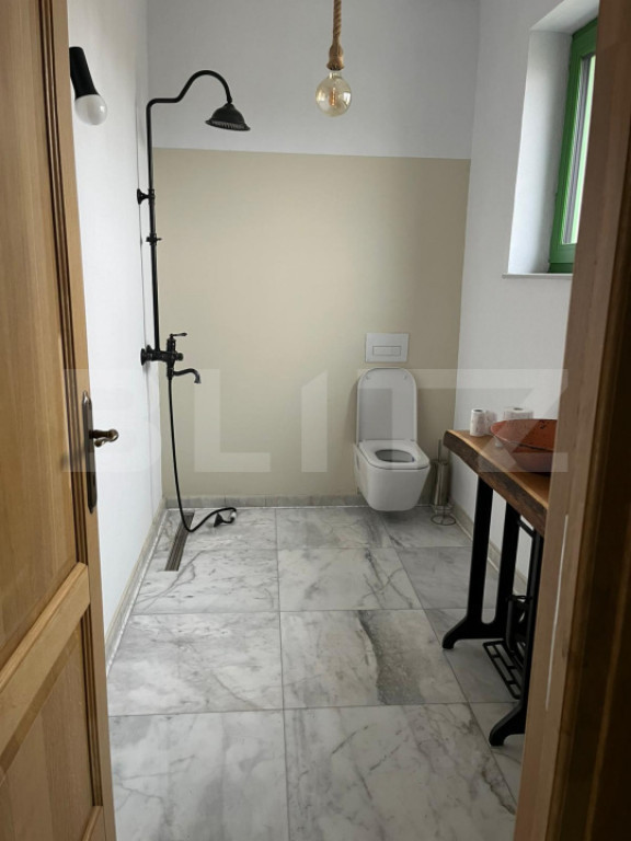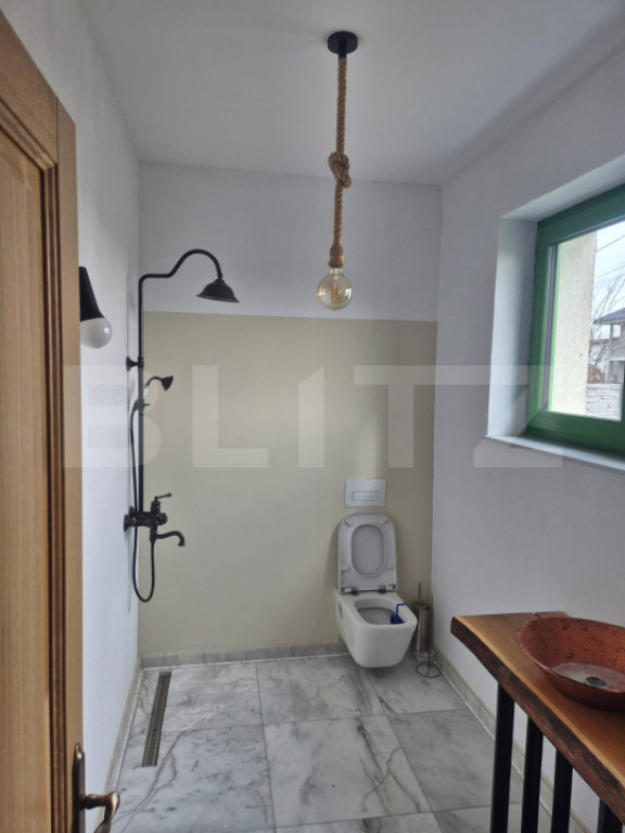 Blitz propune spre vânzare o casă tip P+1EM, situată în zona Magnolia, pe un teren cu suprafața totală de 450 mp și o deschidere de 18 metri. Proprietatea se remarcă printr-un design arhitectural unicat, fiind potrivită atât pentru locuință personală, cât și pentru desfășurarea de activități comerciale, spații de birouri sau sediu de firmă. Construcția a fost finalizată în anul 2023 și se evidențiază printr-o execuție realizată cu simț de răspundere și materiale de calitate superioară. Casa are o suprafață utilă de aproximativ 110 mp și este compartimentată funcțional, oferind confort și spațiu bine organizat. La parter se află un living open-space generos, cu bucătărie integrată, o baie complet echipată și o cameră destinată depozitării sau amenajată ca dressing. Etajul cuprinde două camere spațioase, ce pot fi utilizate ca dormitoare sau birouri, o baie, un hol și un balcon. Accesul între niveluri se face pe o scară interioară din fier, acoperită cu microciment. Imobilul dispune de două intrări: una principală și una laterală, ceea ce conferă versatilitate în utilizare. Construcția este realizată din cărămidă Porotherm, cu o izolație termică performantă, alcătuită din 40 cm vată minerală pe pereți și 20 cm izolație sub învelitoarea din țiglă. Înălțimea camerelor este de 3,5 metri, ceea ce oferă o senzație de spațiu și lumină. Finisajele sunt premium: sape și tencuieli mecanizate, pardoseli din microciment cu sistem de încălzire în pardoseală, uși interioare din lemn stratificat și scări metalice finisate cu microciment. Casa este dotată cu sistem de supraveghere video funcțional și beneficiază de toate utilitățile necesare: rețea de gaze naturale, curent electric, put forat și fosă septică. Prin calitatea construcției, compartimentarea echilibrată și atenția la detalii, această proprietate reprezintă o alegere ideală pentru cei care își doresc o locuință modernă, solidă și eficientă, sau pentru cei care caută un spațiu reprezentativ destinat activităților profesionale. Cod ofertă / ID BLITZ: P157433 Id intern: P157433