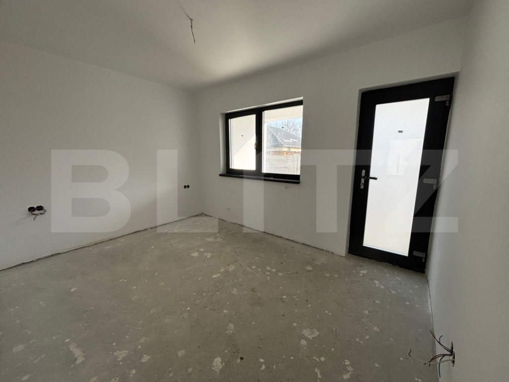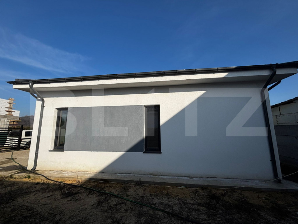 Blitz vă oferă spre achiziție o casă pe plan parter cu o suprafață construită de 121 mp și 85 mp utili, amplasată într-o zonă liniștită si în plină dezvoltare, cu acces facil către Craiova, in Leamna de Jos. Locuința este construită pe cadre de beton armat, cu zidărie din BCA, este dotată cu tâmplărie termopan Gealan, acoperiș din tablă, iar la exterior beneficiază de izolație termică de 10 cm, asigurând un bun confort termic și eficiență energetică. Compartimentarea este practică și funcțională: -în partea dreaptă a holului casei se află livingul, iar din acesta se accesează zona de dining, bucătăria și camera tehnică/debara; -în partea stângă a holului sunt amplasate cele două dormitoare și baia. Locuința beneficiază de două terase: cea mică (2,2 mp) în partea din față a casei și alta (8 mp) acoperită în spate, cu acces din dormitor și bucătărie, precum și de pod pentru depozitare suplimentară. Terenul aferent construcției are o suprafață de 331 mp, oferind suficient spațiu pentru activități în aer liber și multiple posibilități de amenajare. Proprietatea dispune de puț forat și fosă septică, iar curentul electric și rețeaua de apă se află la limita de proprietate, facilitând racordarea. Imobilul se adresează unei familii care își dorește o locuință pe care o poate personaliza după propriile preferințe, casa fiind la alb la interior. Zona Leamna de Jos este apreciată pentru liniște, aer curat și apropierea de natură. Accesul către proprietate se face prin pădure, oferind o atmosferă relaxantă, asemănătoare unei zone de vacanță. În apropiere se află și râul Jiu, la aproximativ 3 minute de mers pe jos, ceea ce completează cadrul natural deosebit. Pentru alte detalii suplimentare sau a vedea cum vi se potrivește proprietatea, vă așteptăm cu drag la vizionare. Disponibilitate imediata. Cod ofertă / ID BLITZ: P167172 Id intern: P167172