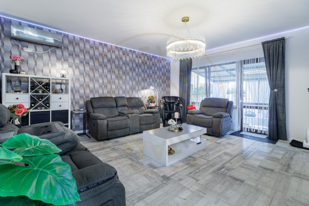 Casa se va vinde mobilată, însă curtea rămâne complet utilată: sistem de iluminat inteligent, piscină, camere de supraveghere și jacuzzi cu sistem de încălzire, toate incluse.
