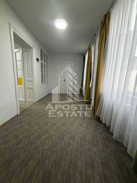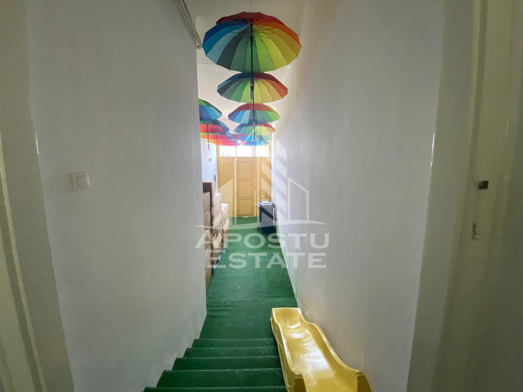 APOSTU ESTATE va propune spre inchiriere o proprietate spatioasa si versatila, potrivita atat pentru locuinta, cat si pentru o gama variata de activitati profesionale, comerciale sau de birouri. Suprafata utila: 340 mp Compartimentare eficienta: 10 camere, dintre care 8 decomandate, situate la mansarda, nemobilate – ideale pentru birouri, spatii de lucru individuale sau camere pentru cazare 3 bai complet functionale Bucatarie mobilata Spatii luminoase si generoase, usor de adaptat in functie de necesitatile chiriasului Confort si facilitati: 2 centrale termice proprii, asigurand consum optim si confort sporit Compartimentare practica, avantajoasa pentru activitati ce necesita încăperi separate Casa se preda nemobilata, oferind flexibilitate in amenajare Localizare: Situata intr-o zona linistita, cu acces facil la puncte de interes, institutii, zone comerciale si mijloace de transport. Potrivita pentru numeroase activitati: Sediu de firma sau birouri individuale / open-space Cabinete de consultanta (IT, juridic, contabilitate, arhitectura) Centru educational, after-school sau spatiu pentru cursuri Cabinete medicale sau terapii alternative (cu amenajarile necesare) Studio de creatie – design, fotografie, productie media Spatiu pentru workshopuri, traininguri sau intalniri de afaceri Activitati de cazare (hostel, locuinta de serviciu) Pret inchiriere: 1700 EUR – usor negociabil Garantie 1700EUR Pentru detalii suplimentare si programarea unei vizionari, va stam la dispozitie. ID intern: CP2718632