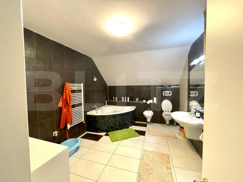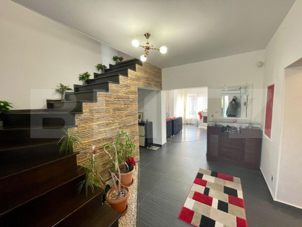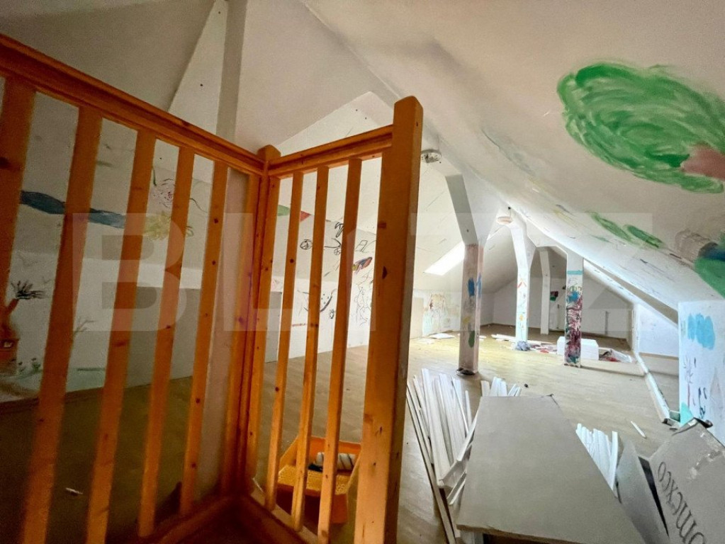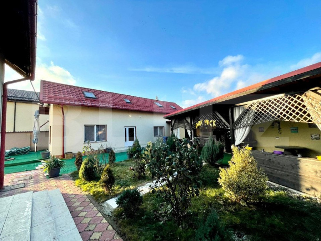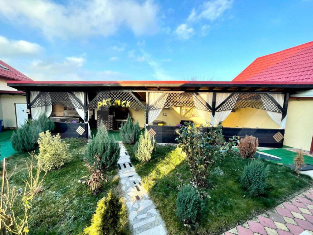 Avem sa iti oferim o proprietate plina de verdeata, liniste si aer curat, aproape de Metro. Vrei sa stai pe o strada privata, sa poti invita zeci de prieteni la gratar, sa organizezi petreceri sau sa inchiriezi pentru evenimente private? Iti propunem un teren de 930 mp, unde este construita o casa de 176 mp utili, o alta casa stil cabana de munte, cu 113 mp utili ( 2 dormitoare, 3 bai, bucatarie si living open space) pentru oaspeti si o terasa exterioara de 72 mp, cu grup sanitar prorpiu, perfecta pentru evenimente in aer liber, ce dispune de cuptor paine sau pizza, gratar, afumatoare si plita de gatit pe lemne. Casa mare este compartimentata astfel: - Parter: living, dining, bucatarie, camera tehnica si terasa, baie - Etaj: 3 dormitoare, 2 bai, 2 balcoane. Din una din camere puteti urca pe o scara interioara spre mansarda, care este open space, amenajabila cum doriti (loc de joaca pentru copii, dressing). Ca si utilitati aveti curent, put forat, statie de epurare. Centrala este pe curent. Casa este izolata, acoperita cu tigla ceramica iar curtea are drenaj cu captare de apa si golire automata prin pompe. Garajul de 30 mp este incapator, pentru 2 masini, constructia fiind separata de casa. Hai sa vizitezi proprietatea, cu siguranta iti va placea! Cod ofertă / ID BLITZ: P8481 Id intern: P8481