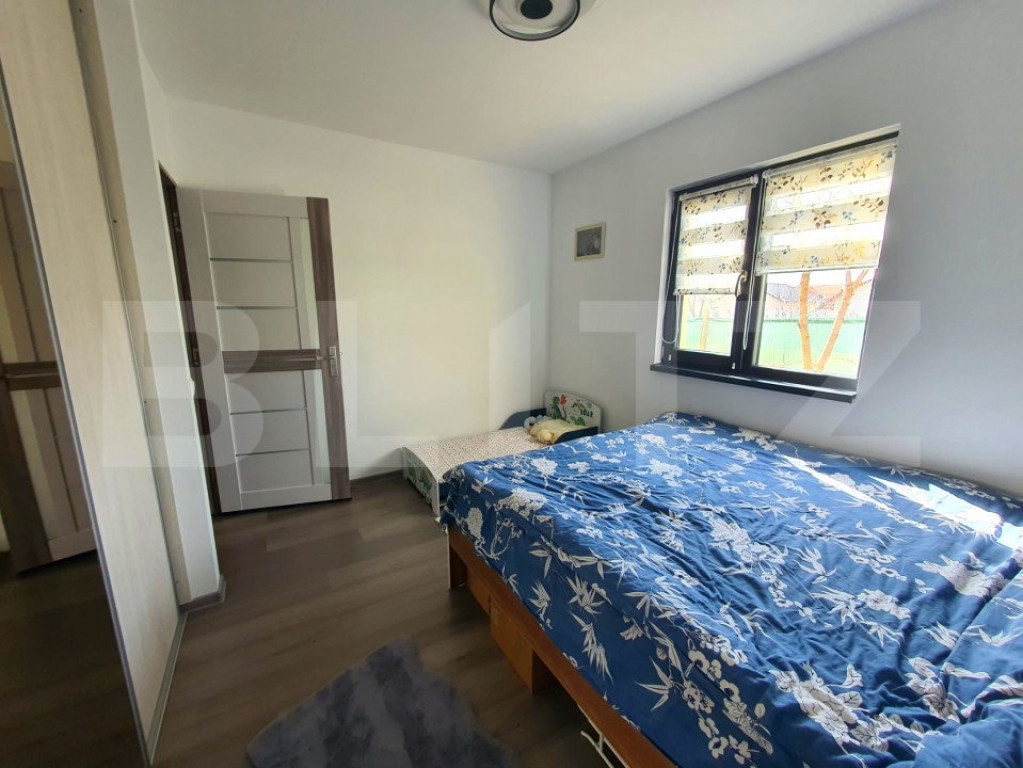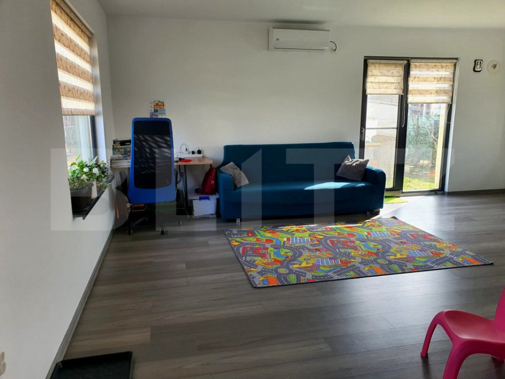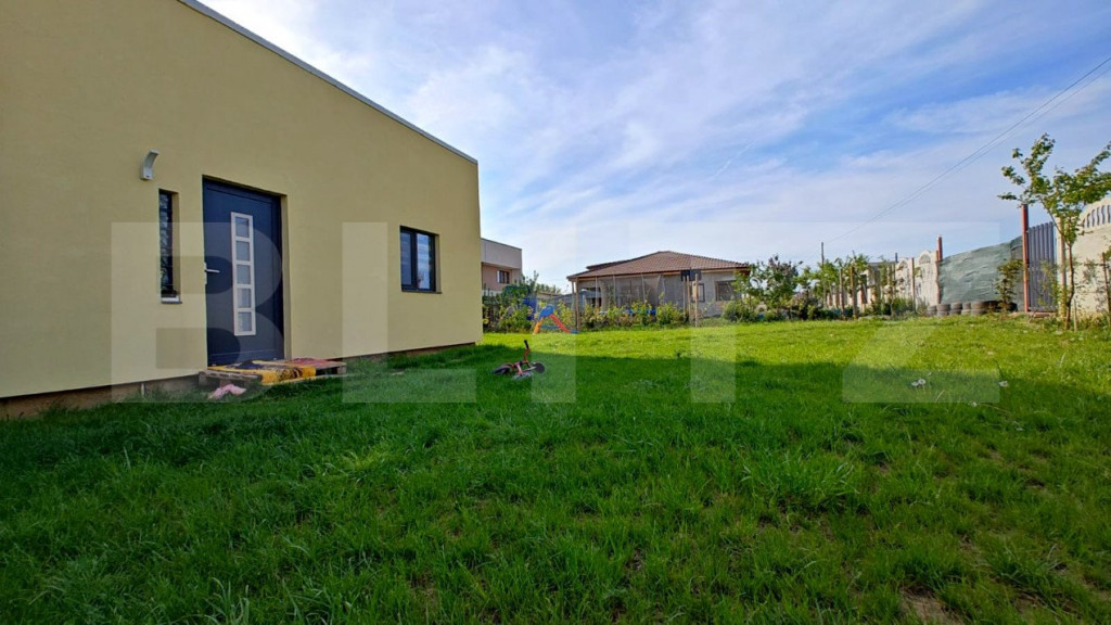 Blitz vă prezintă o casă modernă, recent construită, pe un singur nivel cu o suprafață de 76 mp, ce include 2 dormitoare, fiecare cu dressing, și un living open space cu bucătăria. De asemenea, dispune de o baie spațioasă cu cadă. Proprietatea este amplasată în apropierea magazinului Selgros și a stațiilor de autobuz și tramvai. Casa este echipată cu încălzire în pardoseală prin centrală termică pe curent, oferind un mediu confortabil în orice moment al anului. Bucătăria este complet utilată cu plită și cuptor electric, masină de spălat vase, mașină de spălat rufe cu uscător și hotă. În plus, proprietatea dispune de un frigider modern, televizor și aer condiționat. Eficiența energetică este asigurată de termopanele Salamander, transformând această casă într-o investiție cu costuri reduse de întreținere pe termen lung. Curtea spațioasă de 421 mp este un plus, oferind posibilități de relaxare și activități în aer liber. Zona liniștită și privată completează atmosfera relaxantă, departe de aglomerația urbană. Această proprietate reprezintă o oportunitate excelentă pentru cei care caută un mediu de viață confortabil și modern, având acces facil la facilitățile esențiale. Pentru detalii suplimentare și programări, vă stăm la dispoziție cu plăcere! Cod ofertă / ID BLITZ: P102745 Id intern: P102745