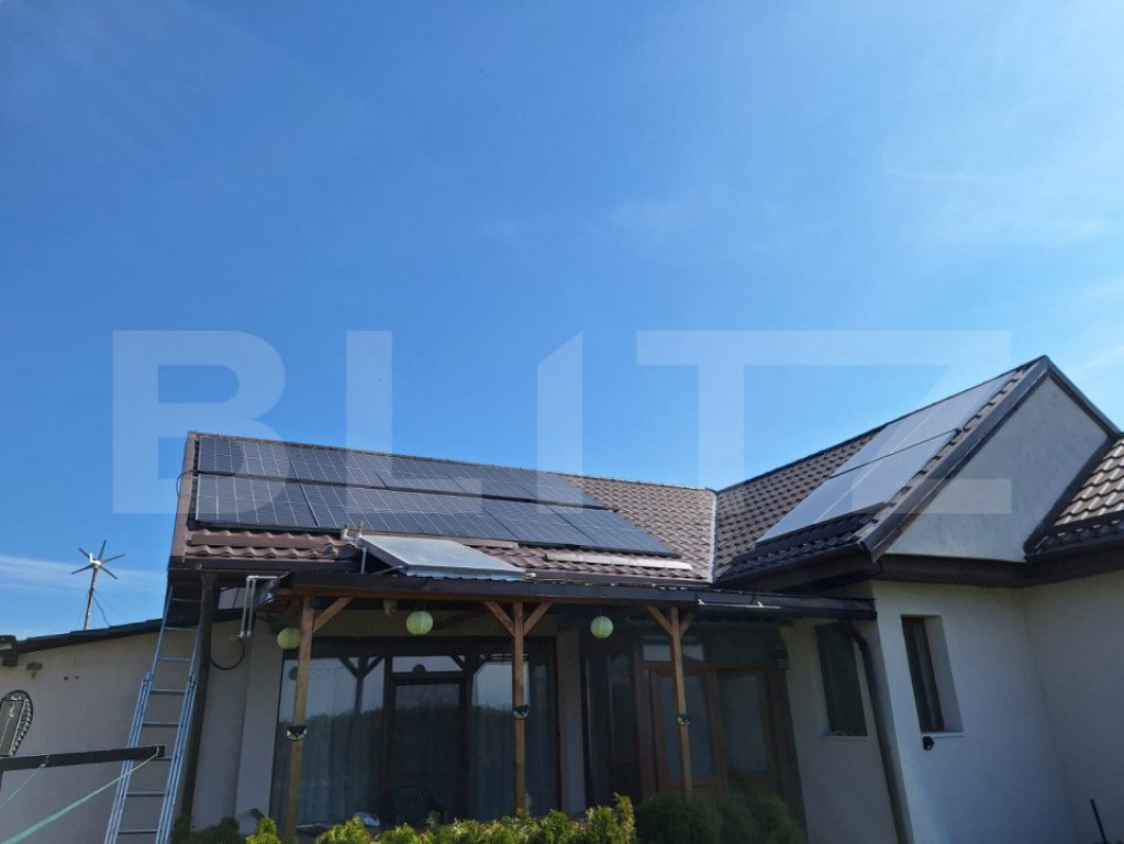 Vă propunem o casă modernă, situată într-un cartier nou din Hălchiu, ideală pentru cei care caută confort și independență energetică. ???? Caracteristici generale: Suprafață construită: 151 mp, dispusă exclusiv pe parter Compartimentare funcțională: 3 dormitoare spațioase Open space: bucătărie + sufragerie + hol 1 baie Pod generos, cu posibilitate de mansardare Teren de 510 mp (17x30 m) ⚡ Independență energetică: Panouri fotovoltaice: sistem de 4,5 kW + sistem de 2 kW Turbină eoliană Încălzire centralizată cu termoșemineu pe peleți + calorifere Sistem de încălzire solară pentru apă menajeră (boiler 160L) + instant pe gaz Aragaz și cuptor pe gaz Utilități: puț forat, fosă septică ???? Alte dotări: Foișor, grătar și magazie lipită de casă Sistem de supraveghere video + alarmă cu senzori de mișcare ???? Disponibilitate vizionare: după-amiaza Aceasta este o locuință ideală pentru cei care își doresc un stil de viață modern, eficient energetic și într-o zonă liniștită. Pentru mai multe detalii sau vizionări, nu ezitați să ne contactați! Cod ofertă / ID BLITZ: P140127 Id intern: P140127
